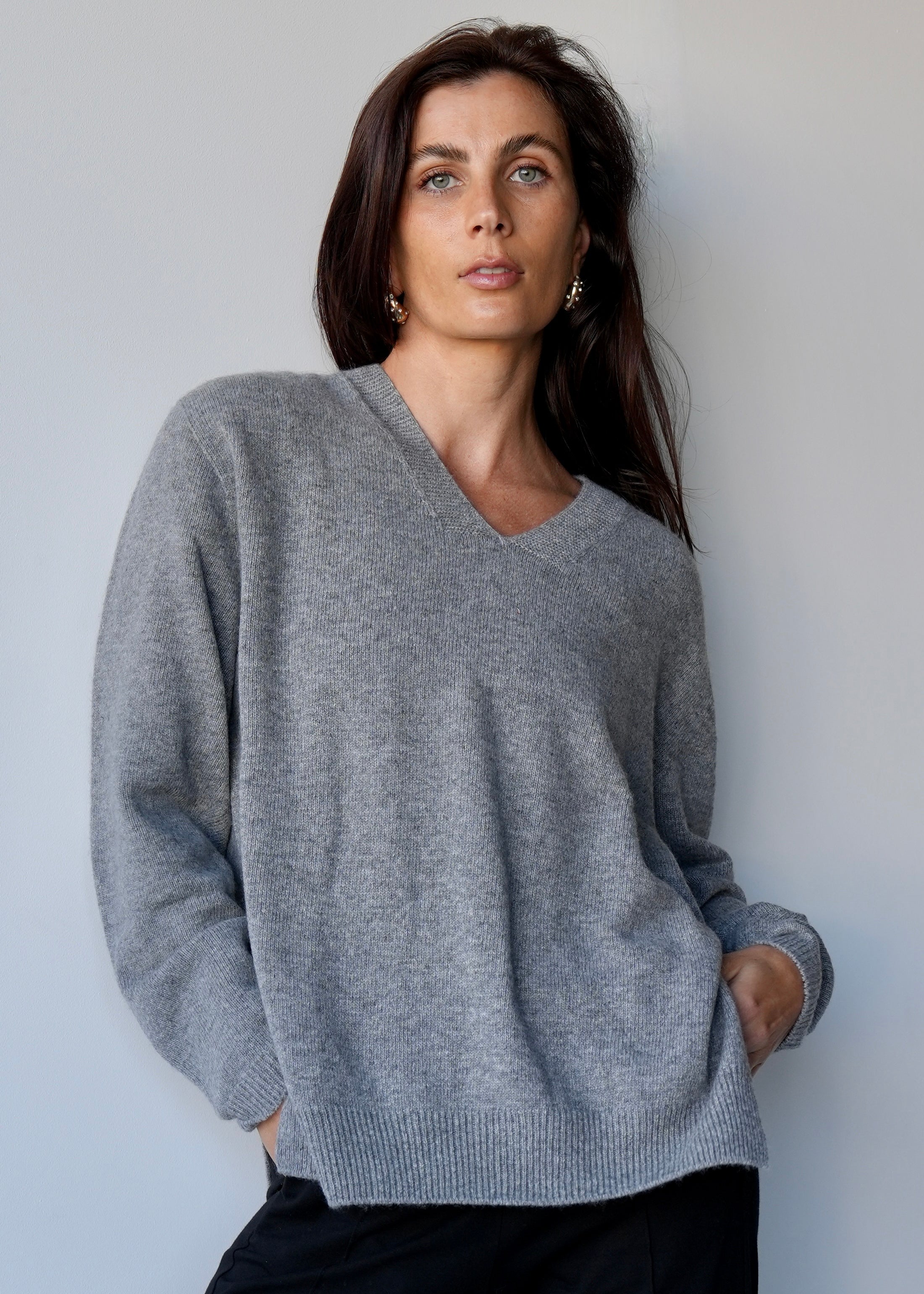 Sunday Wool/Cashmere V-Neck Jumper Grey