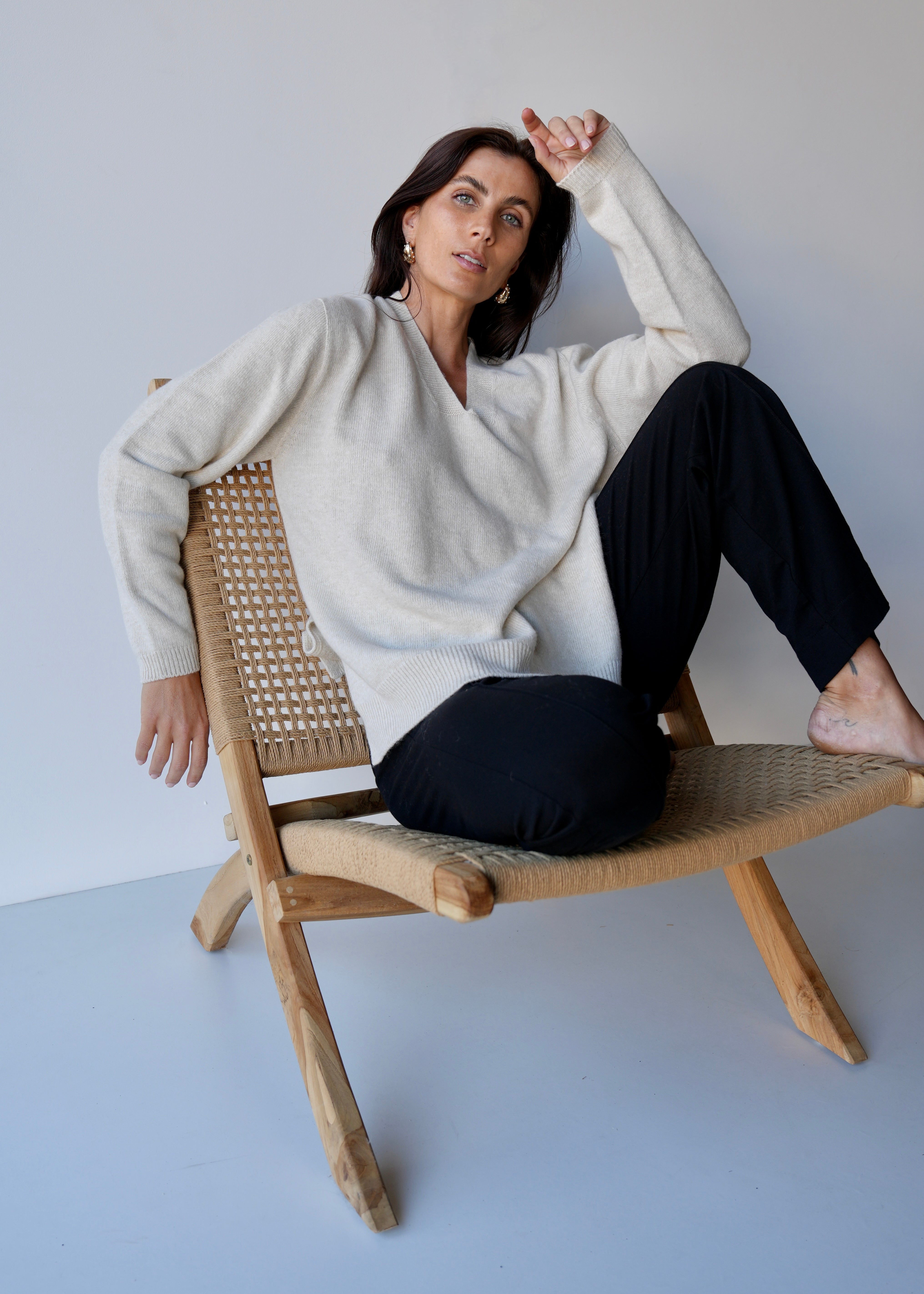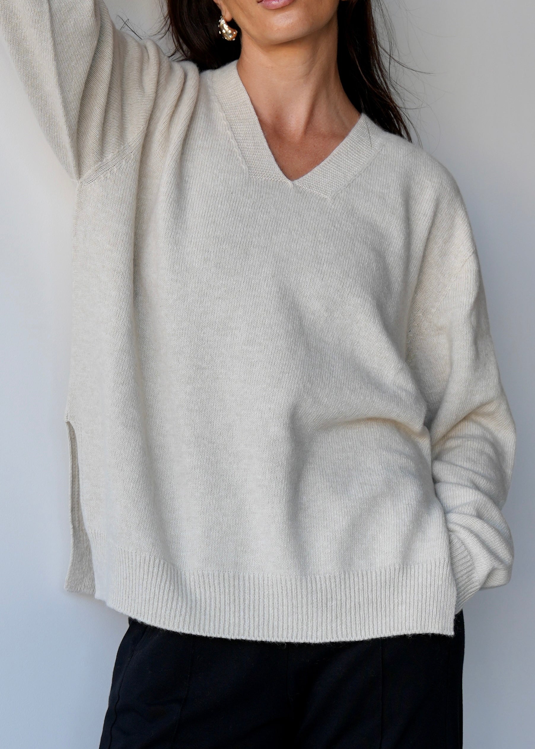 Sunday Wool/Cashmere V-Neck Jumper Natural
