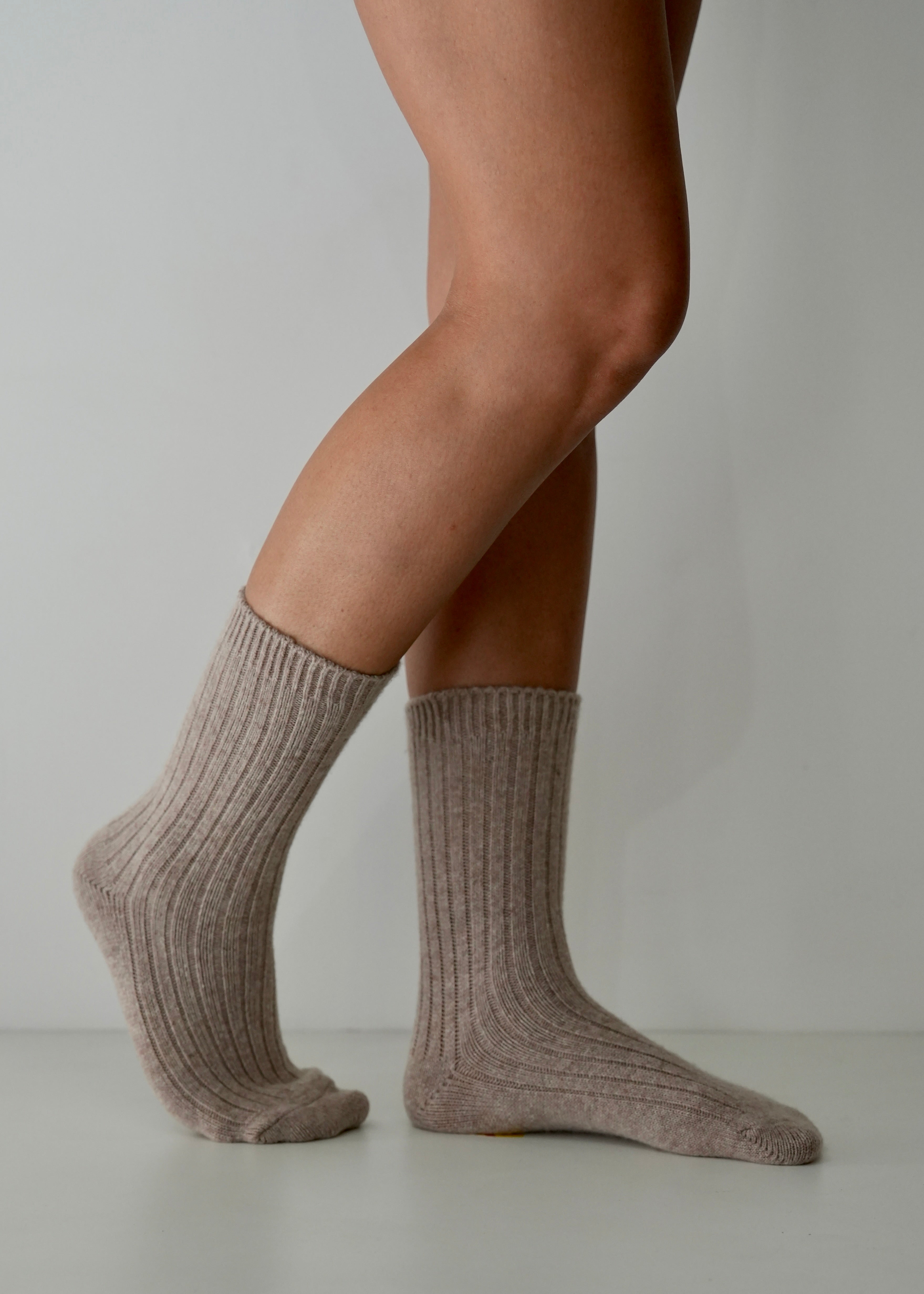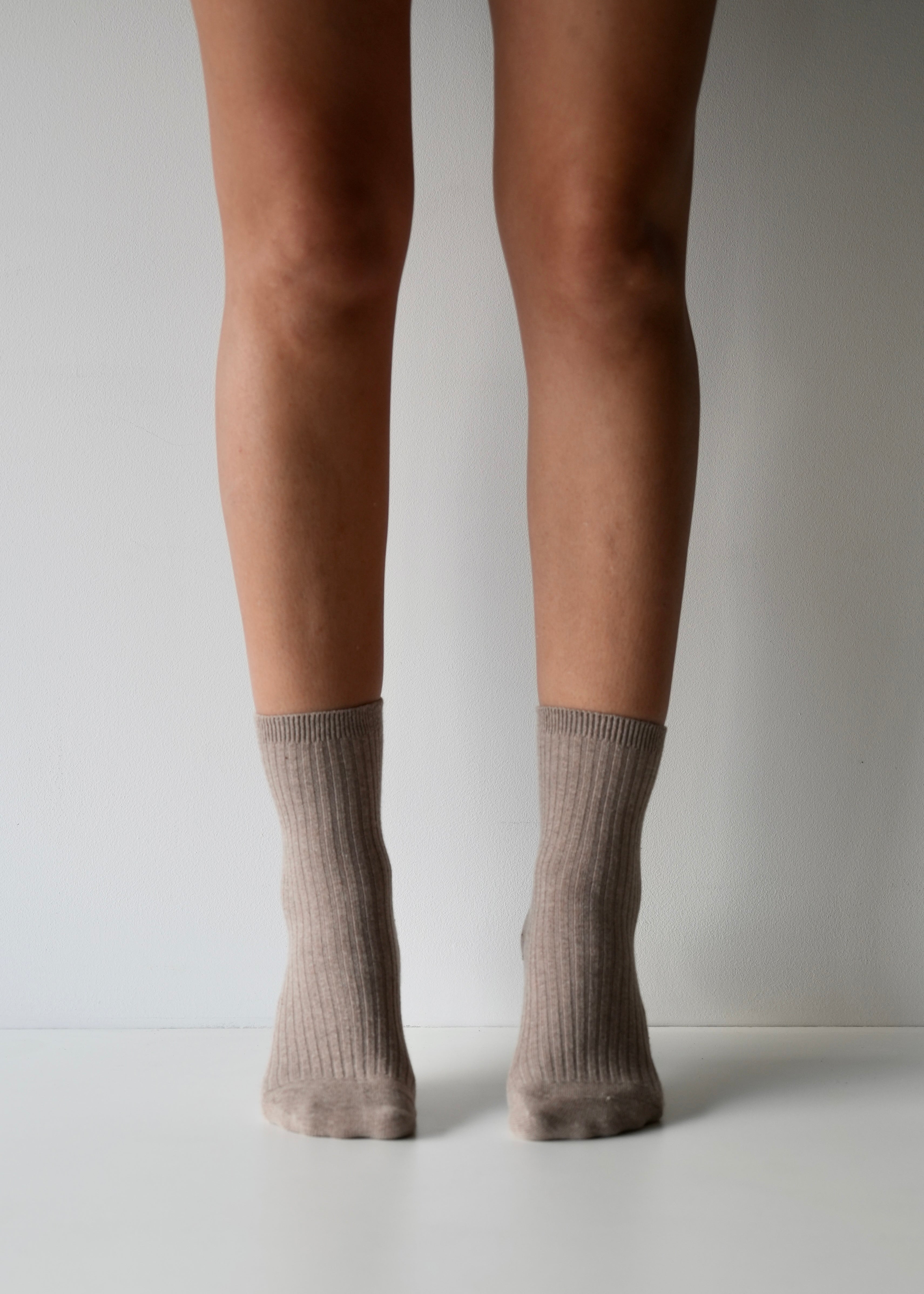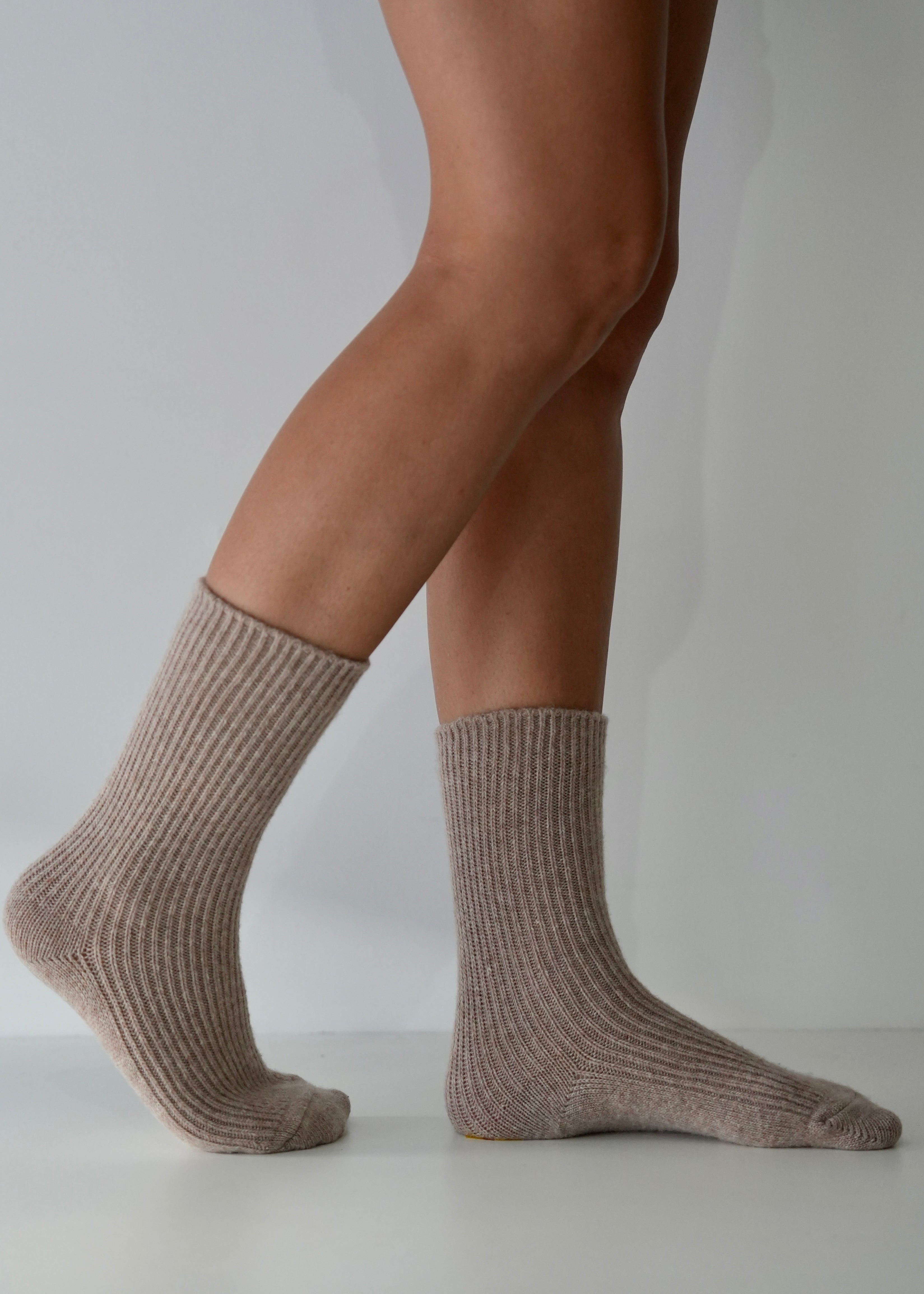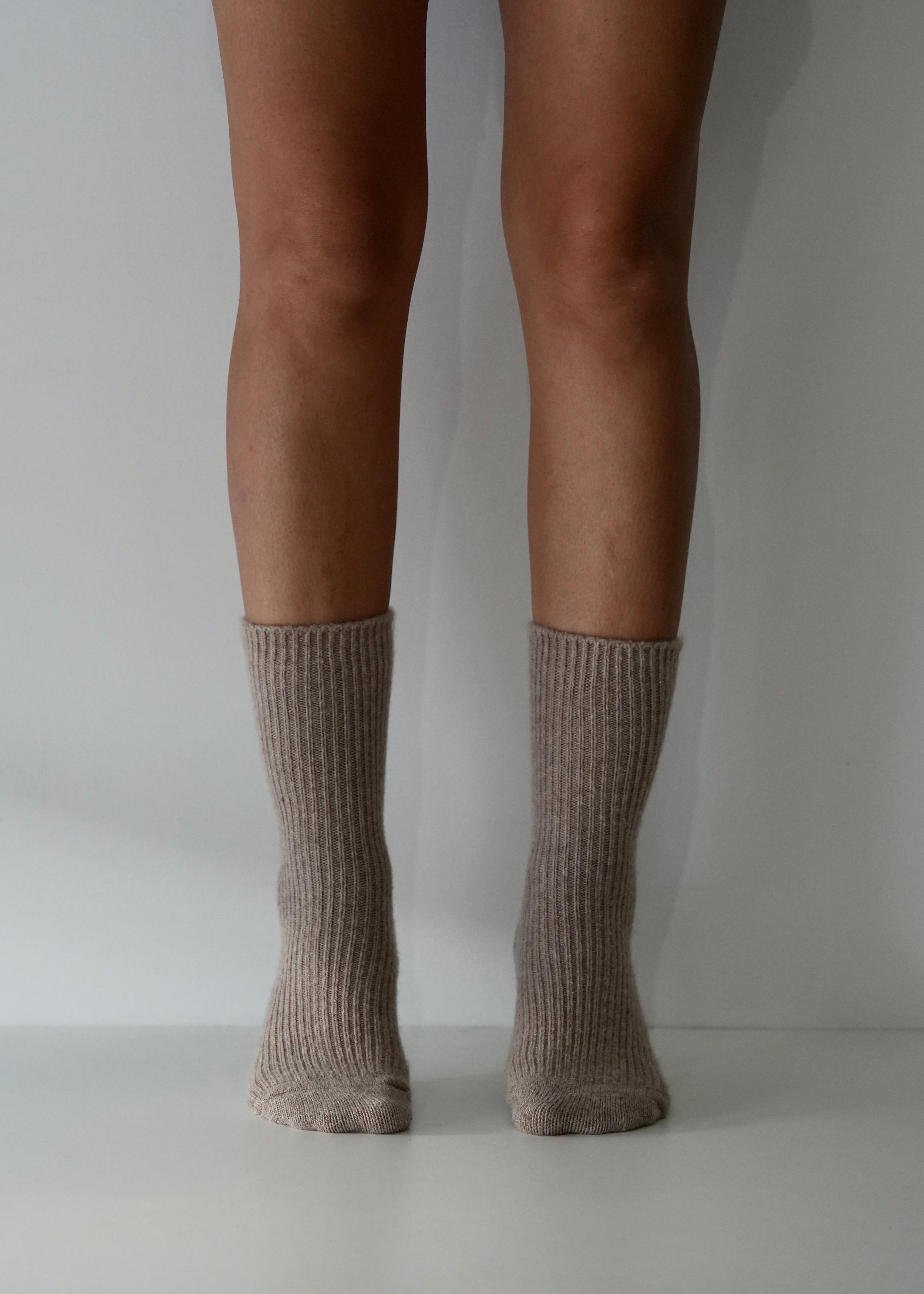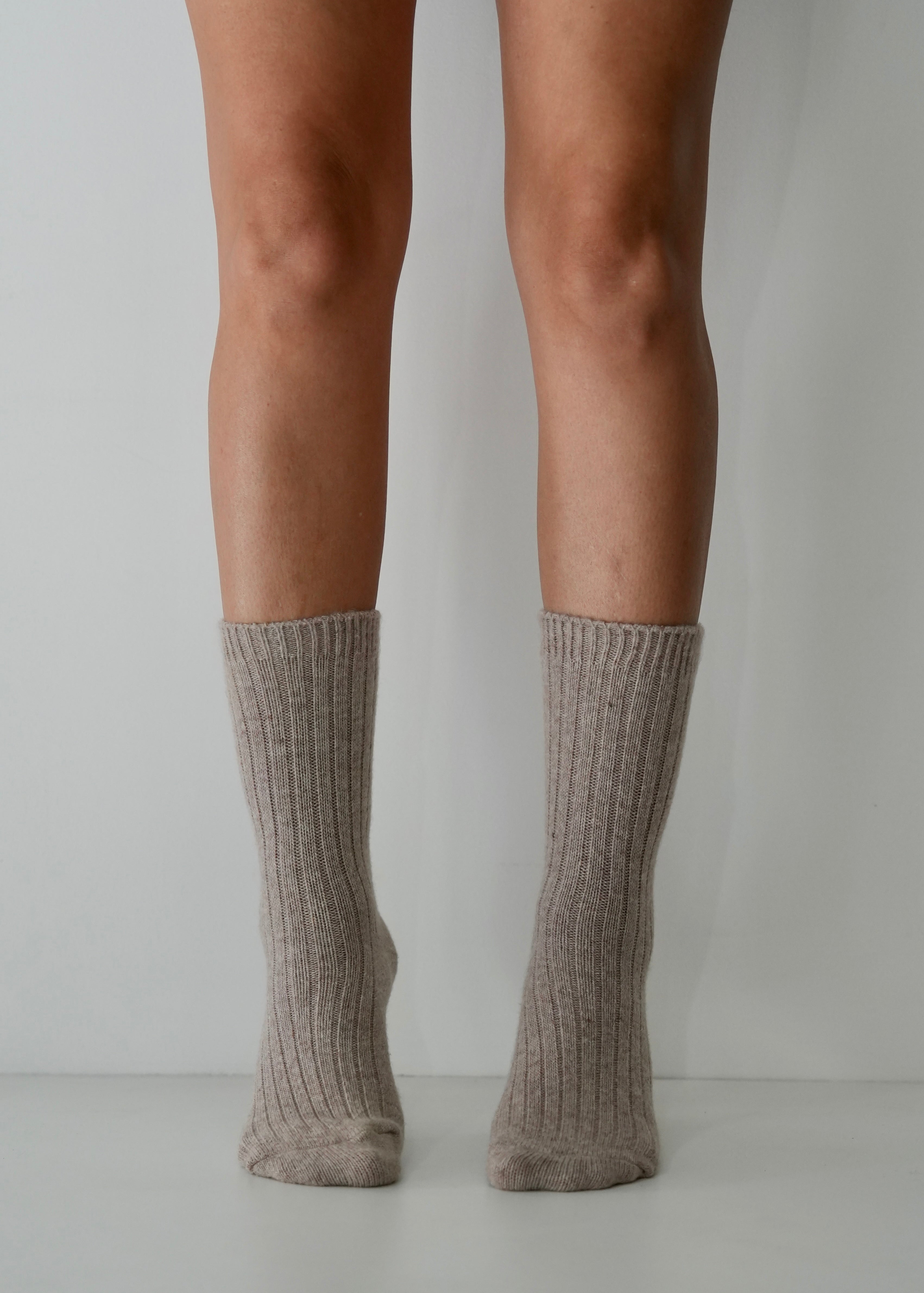Ribbed Cashmere/Wool Knit Socks Taupe