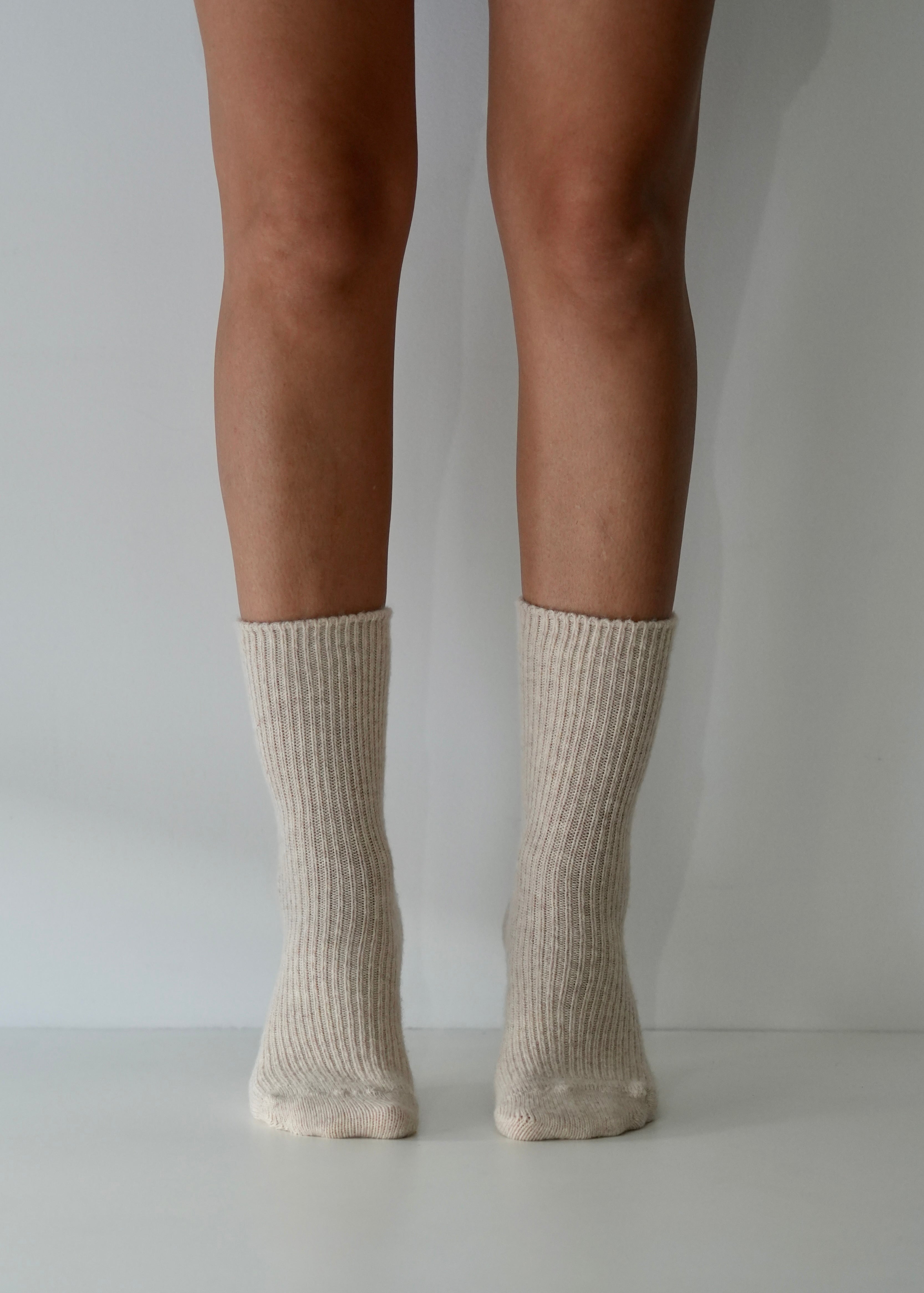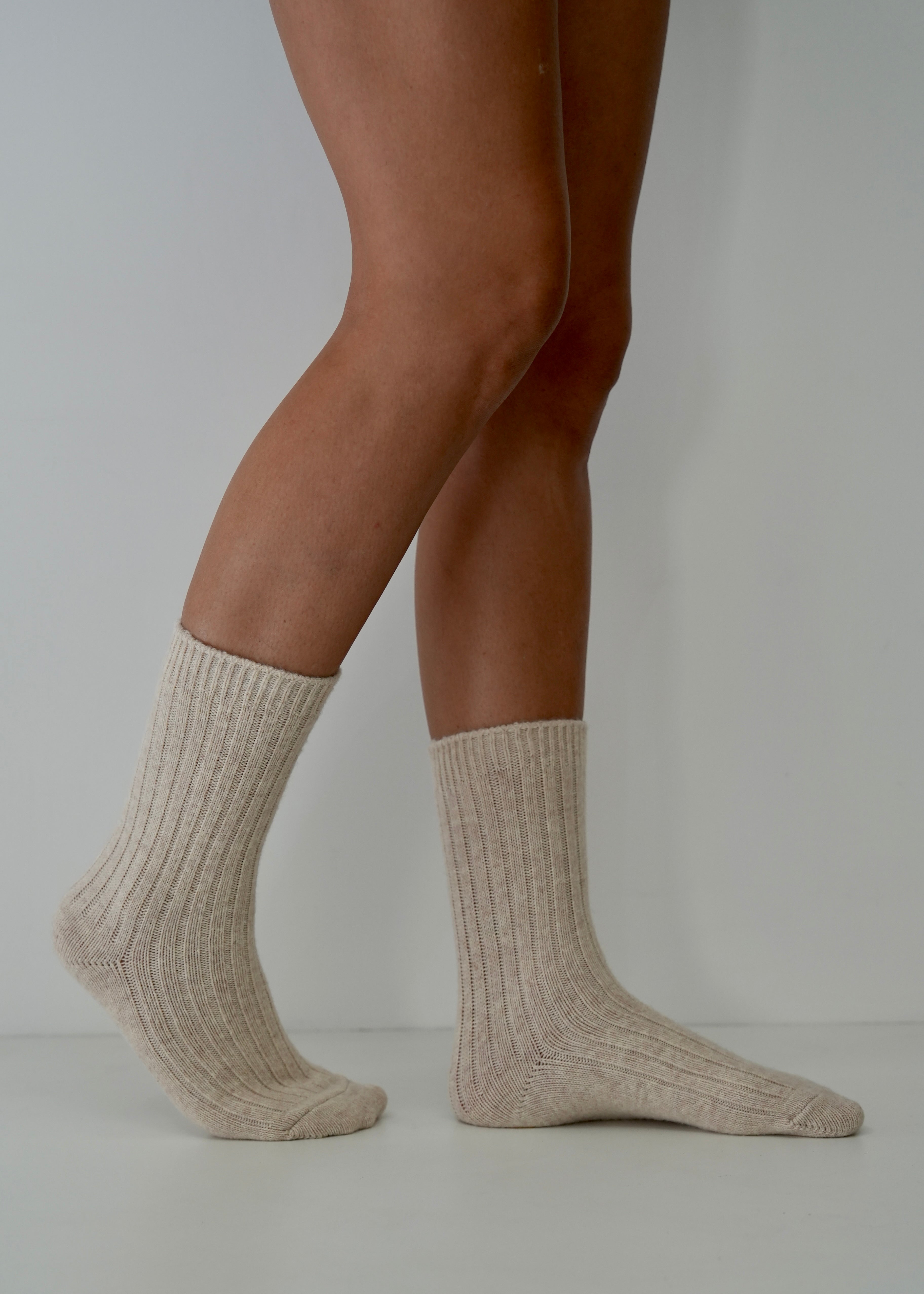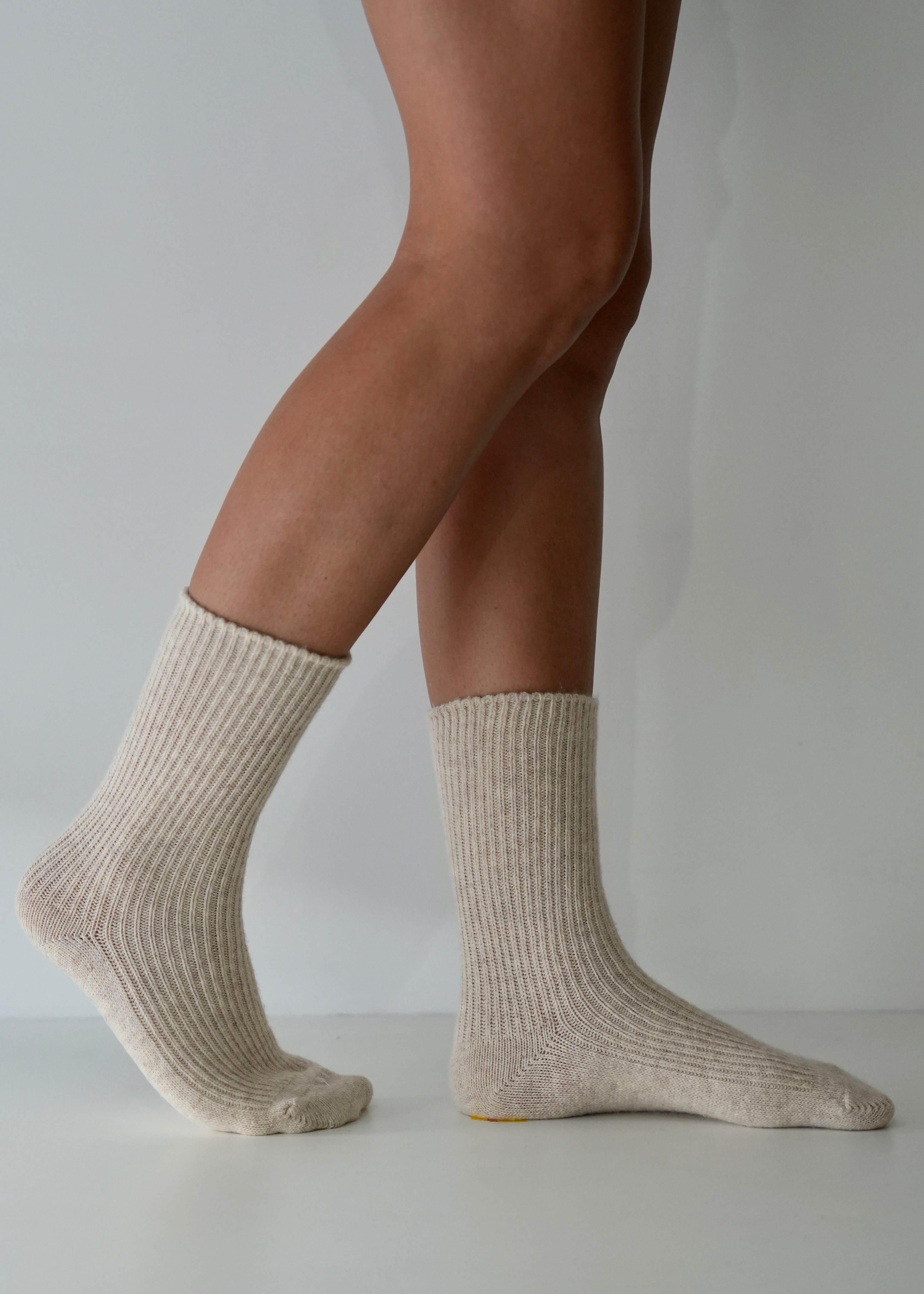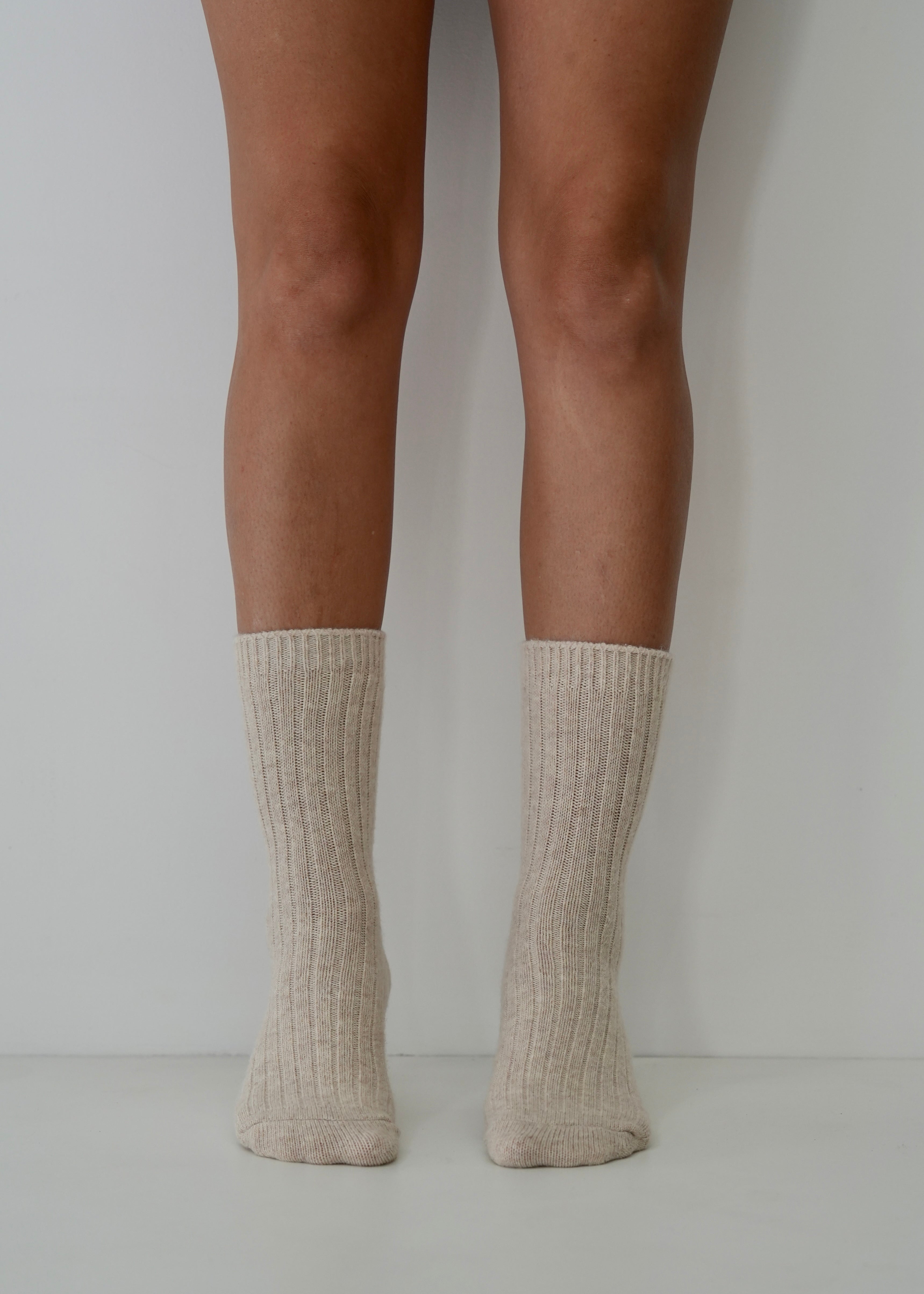 Ribbed Cashmere/Wool Knit Socks Taupe