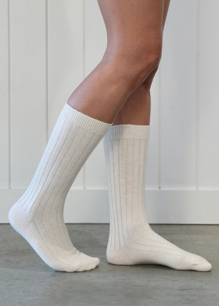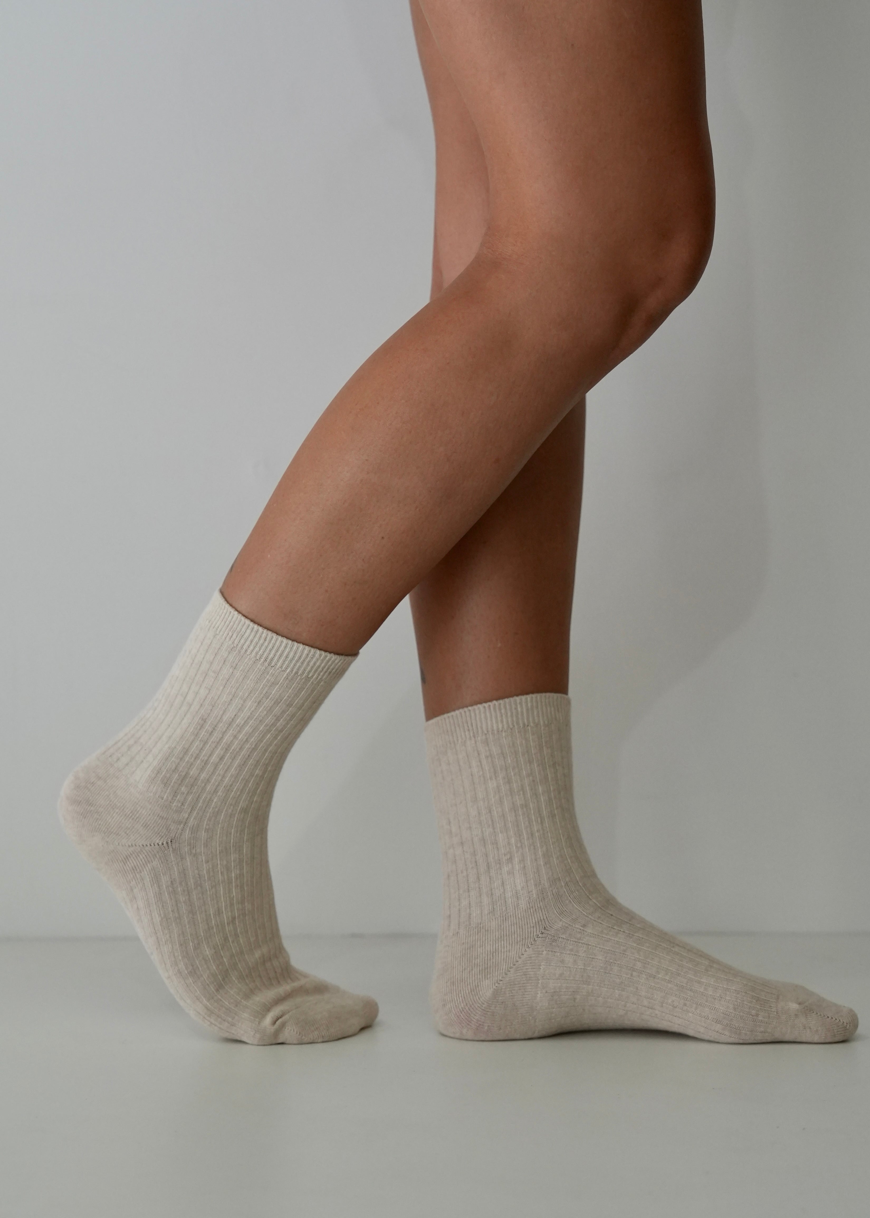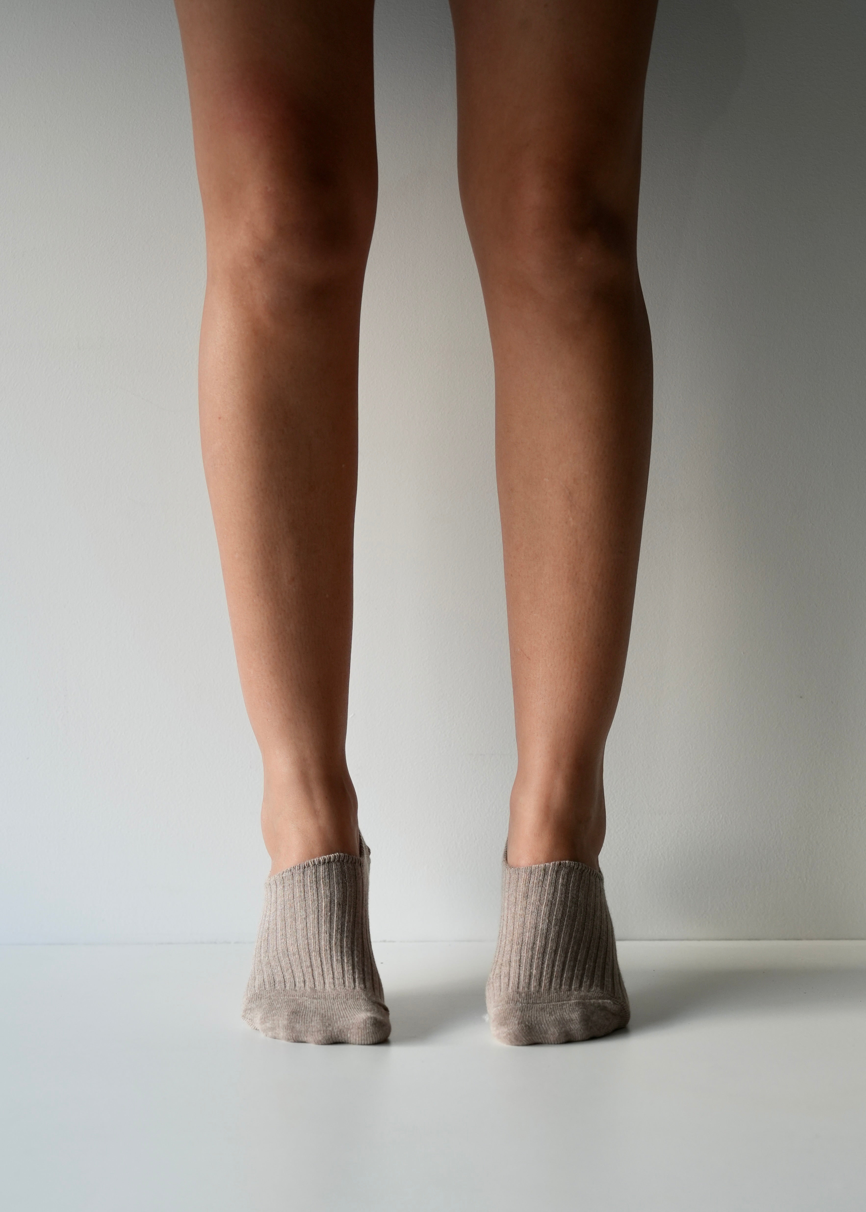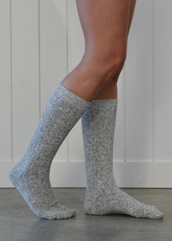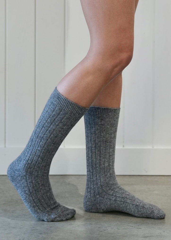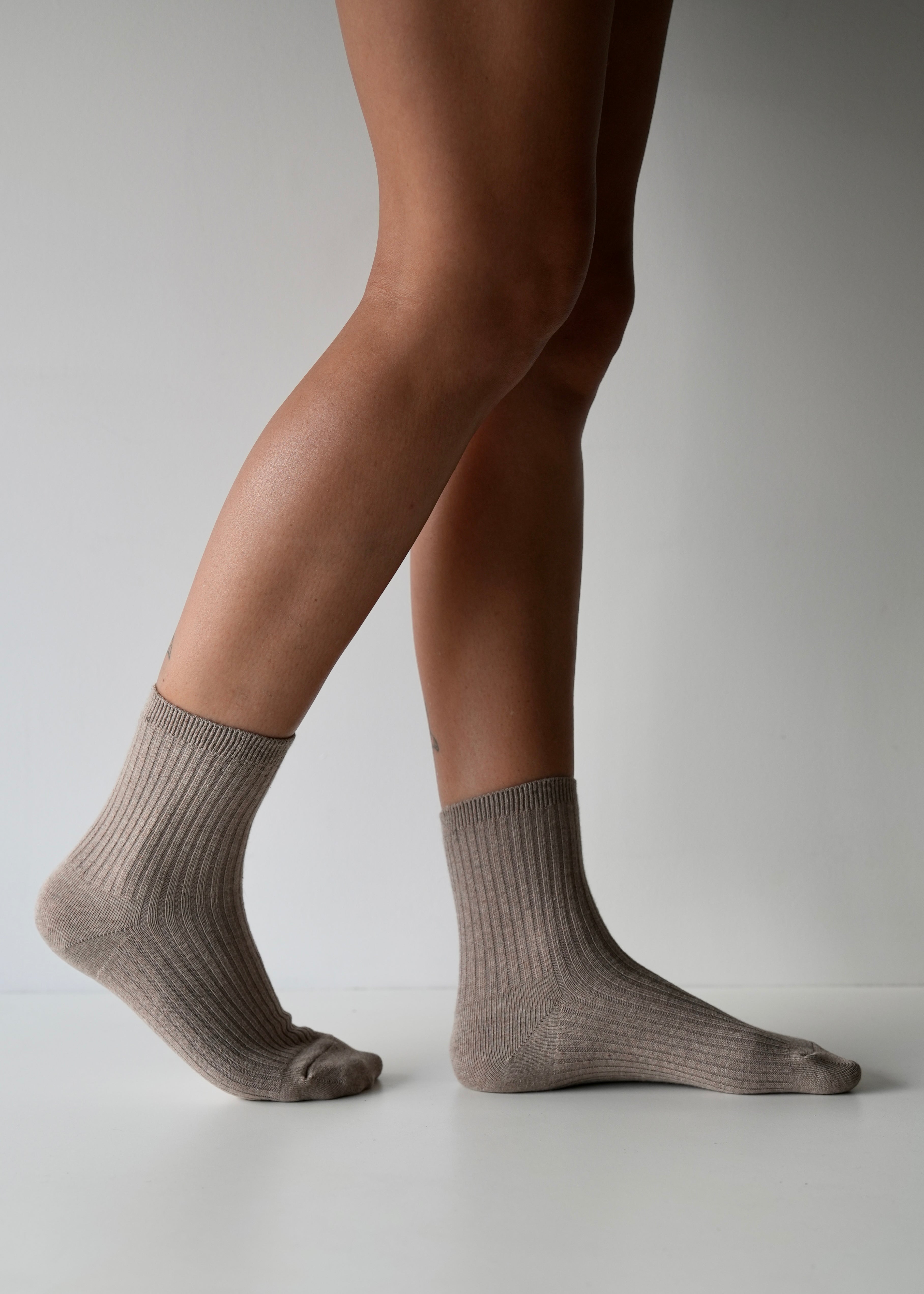 Ribbed Cashmere/Wool Knit Socks Taupe