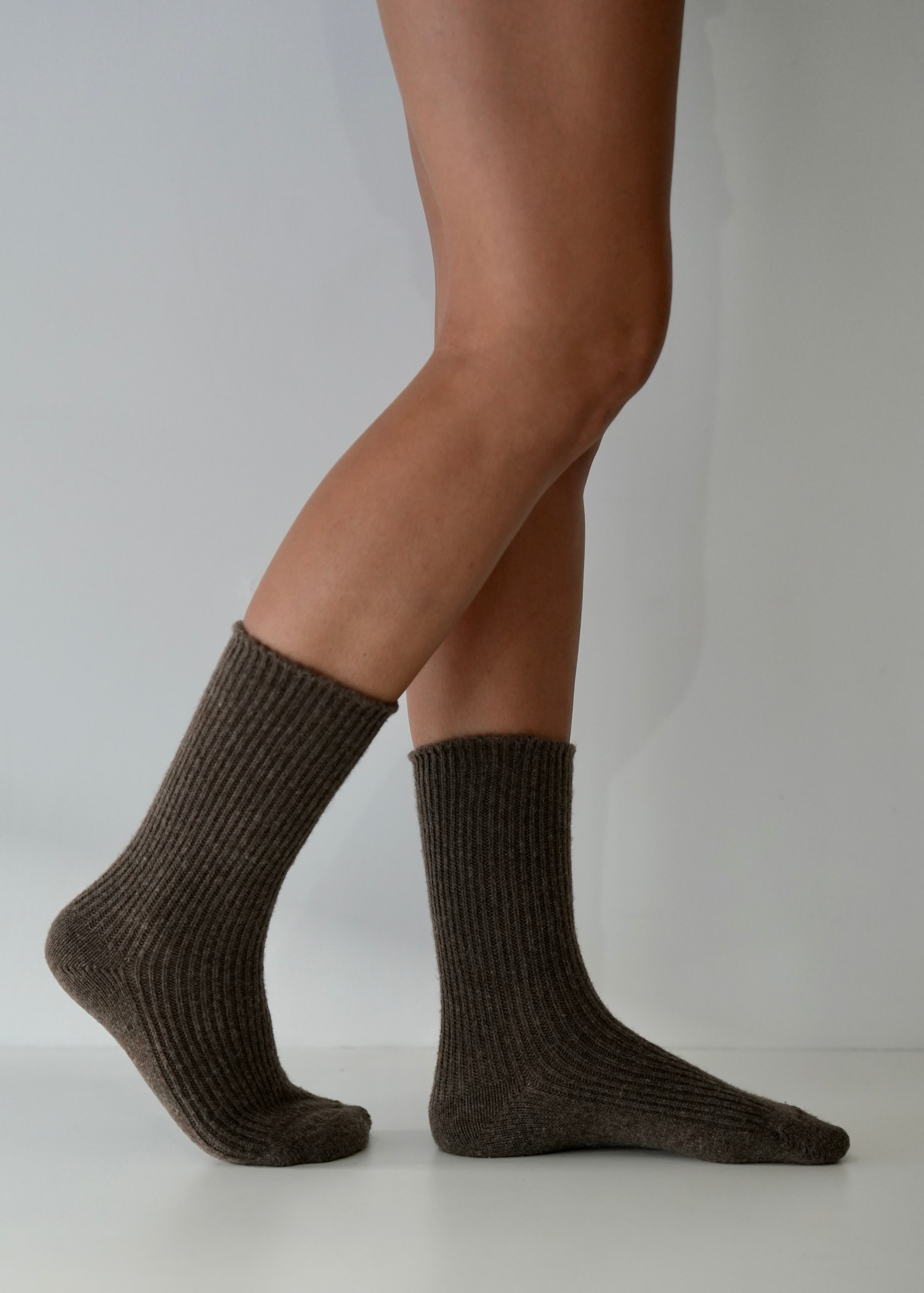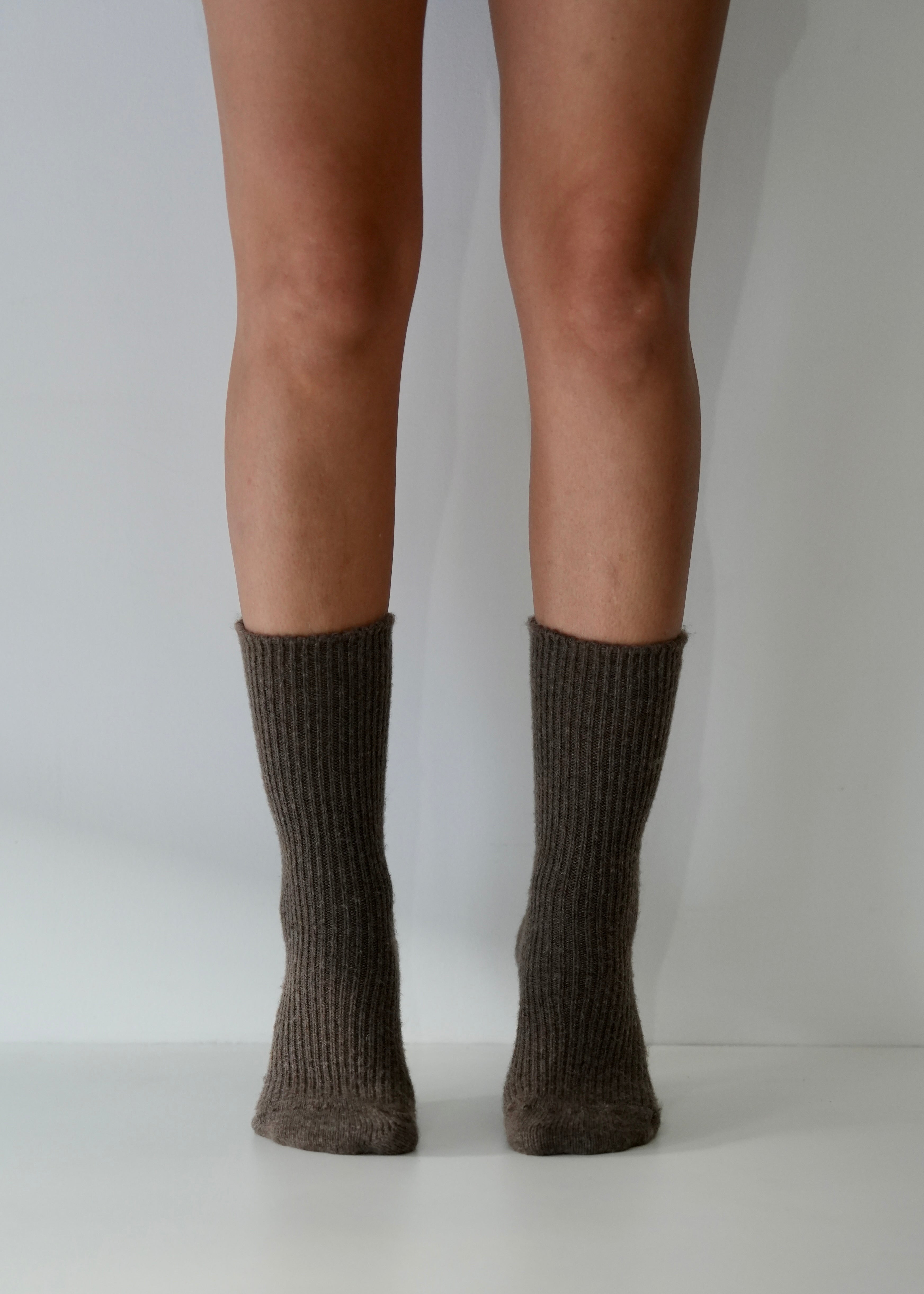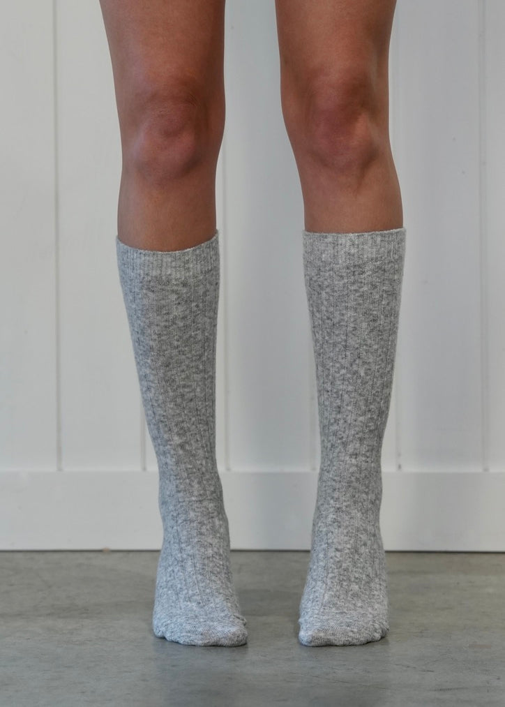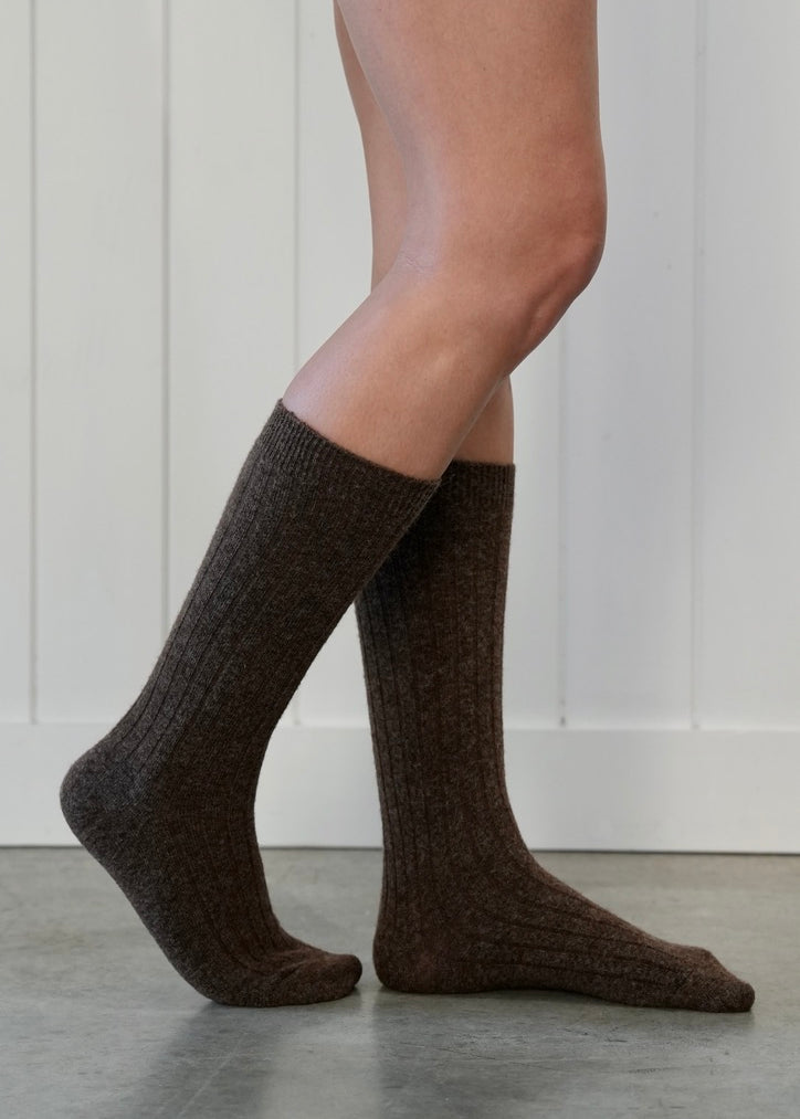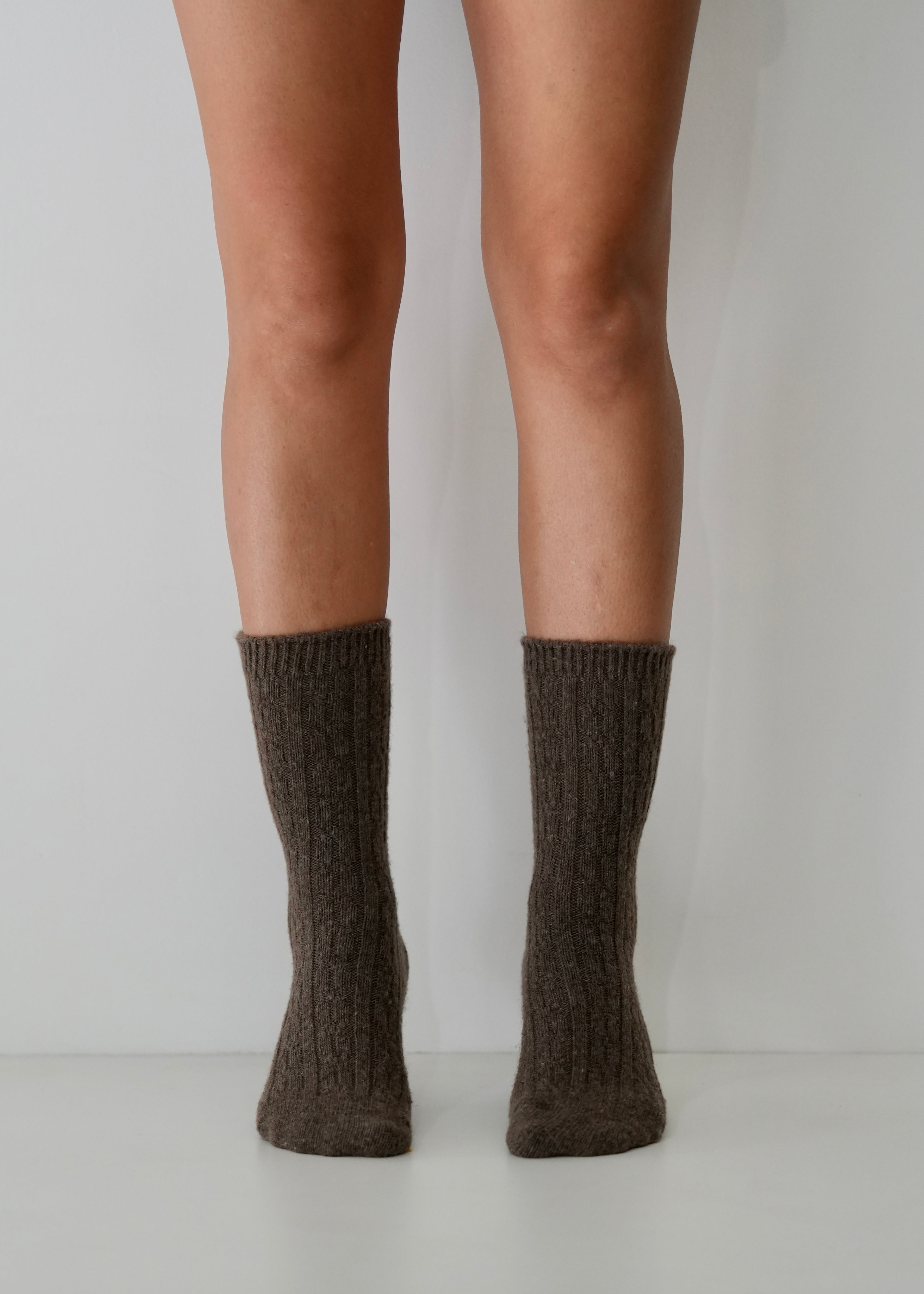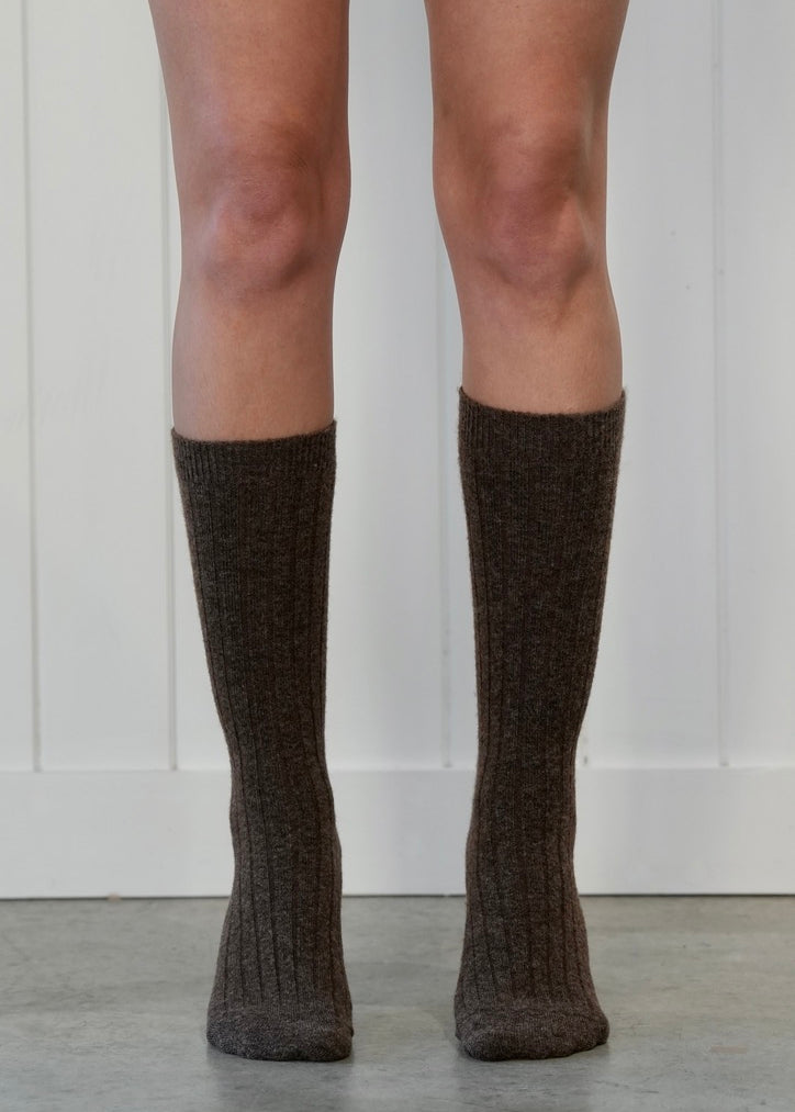 Ribbed Cashmere/Wool Knit Socks Taupe
