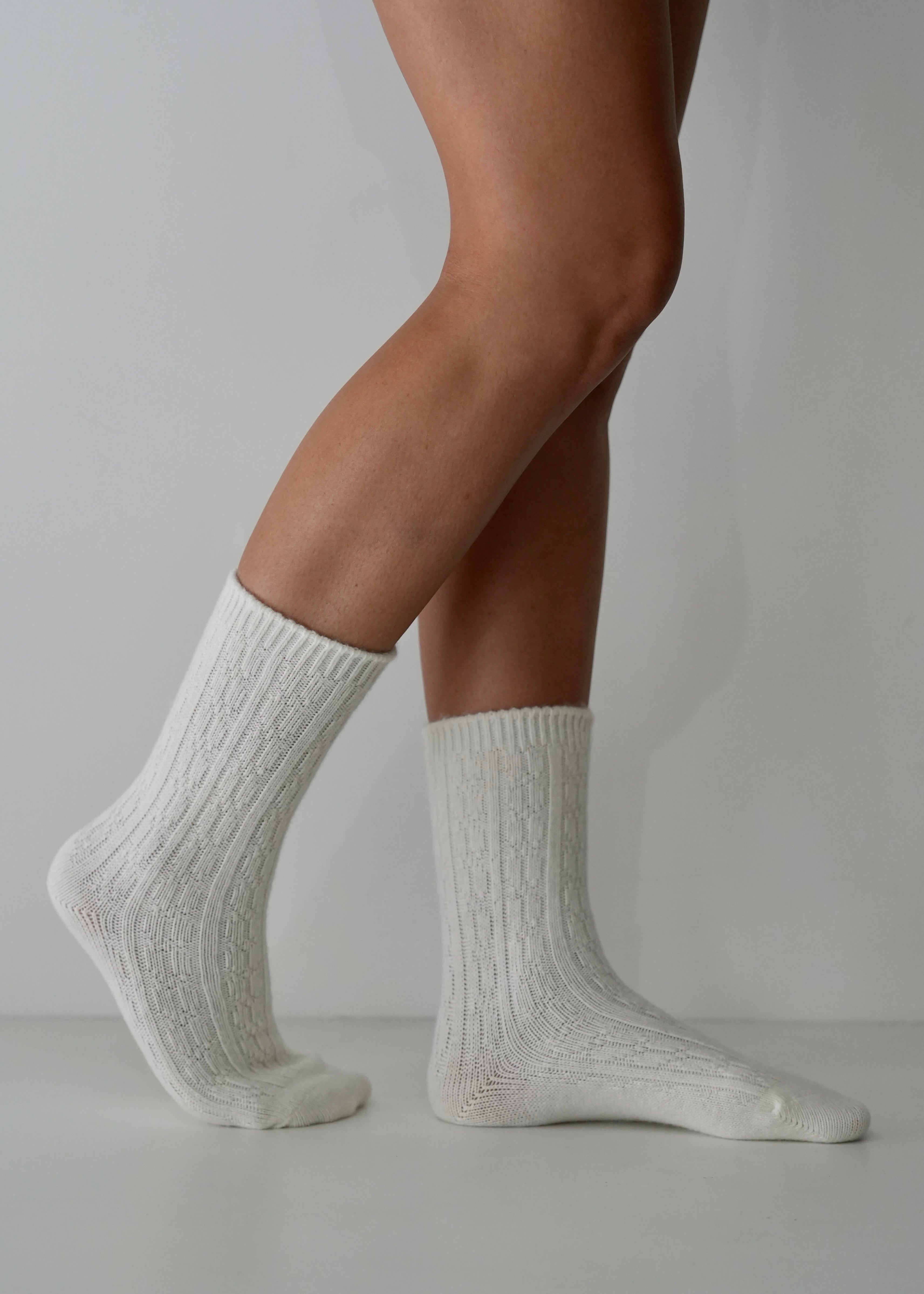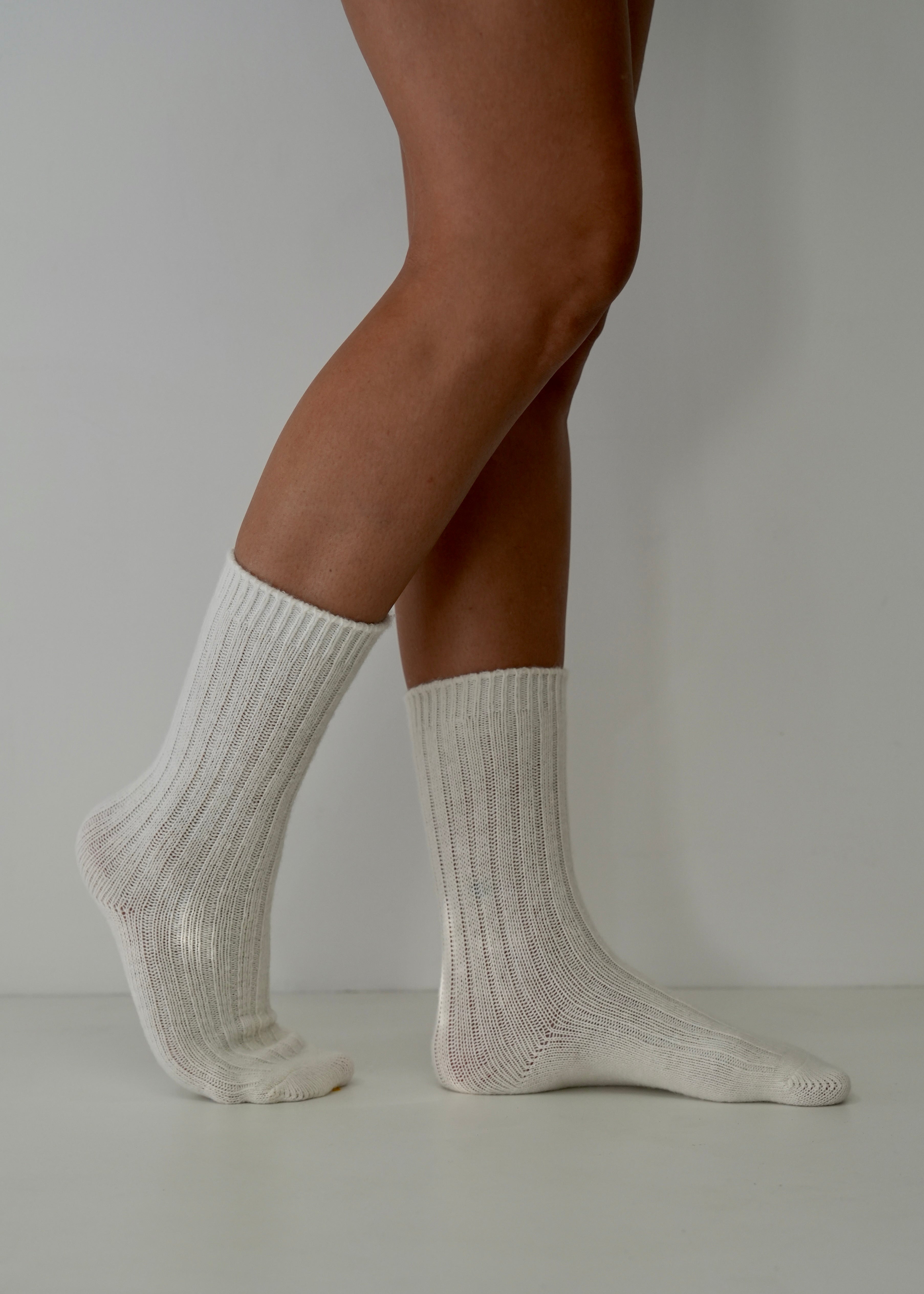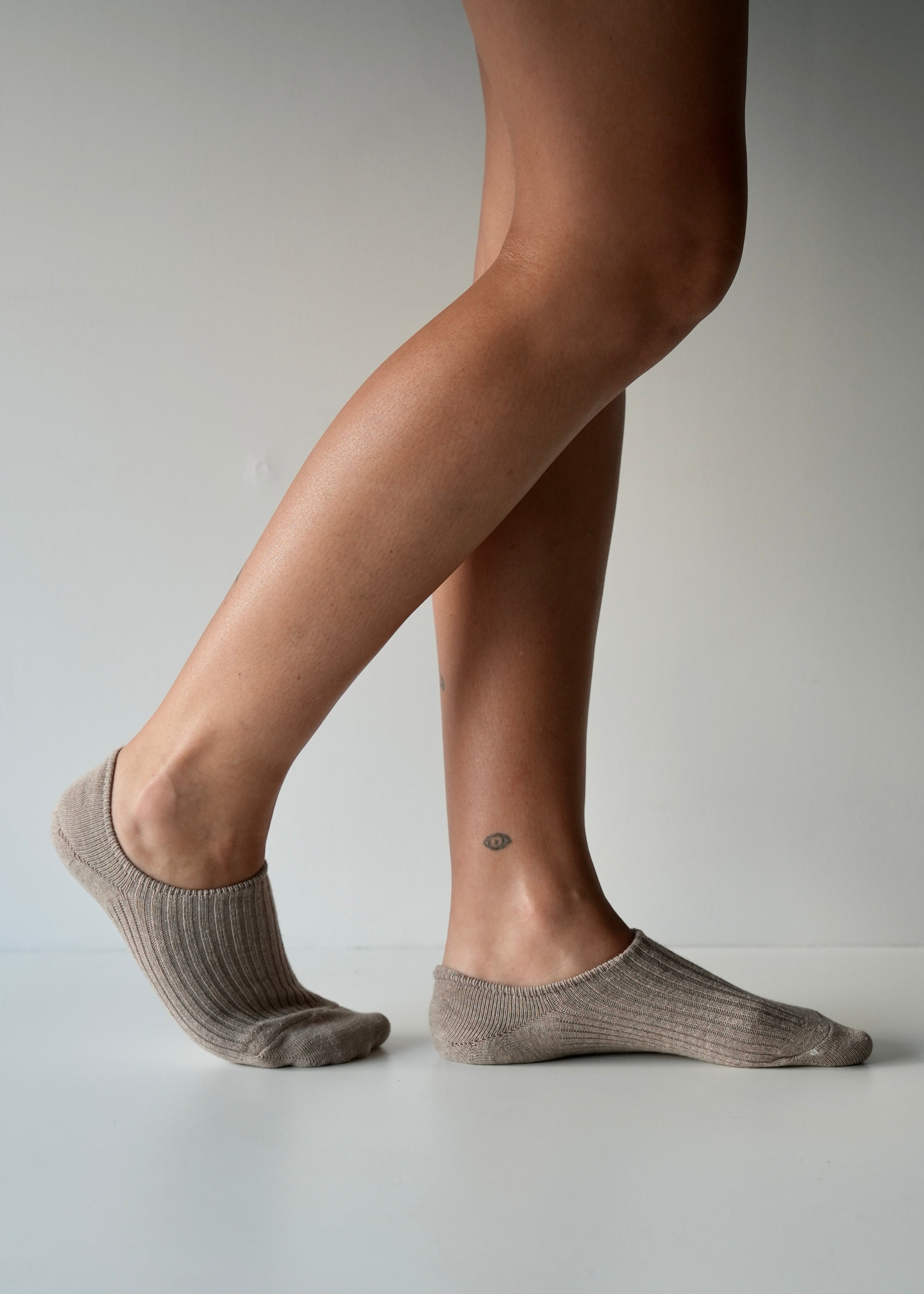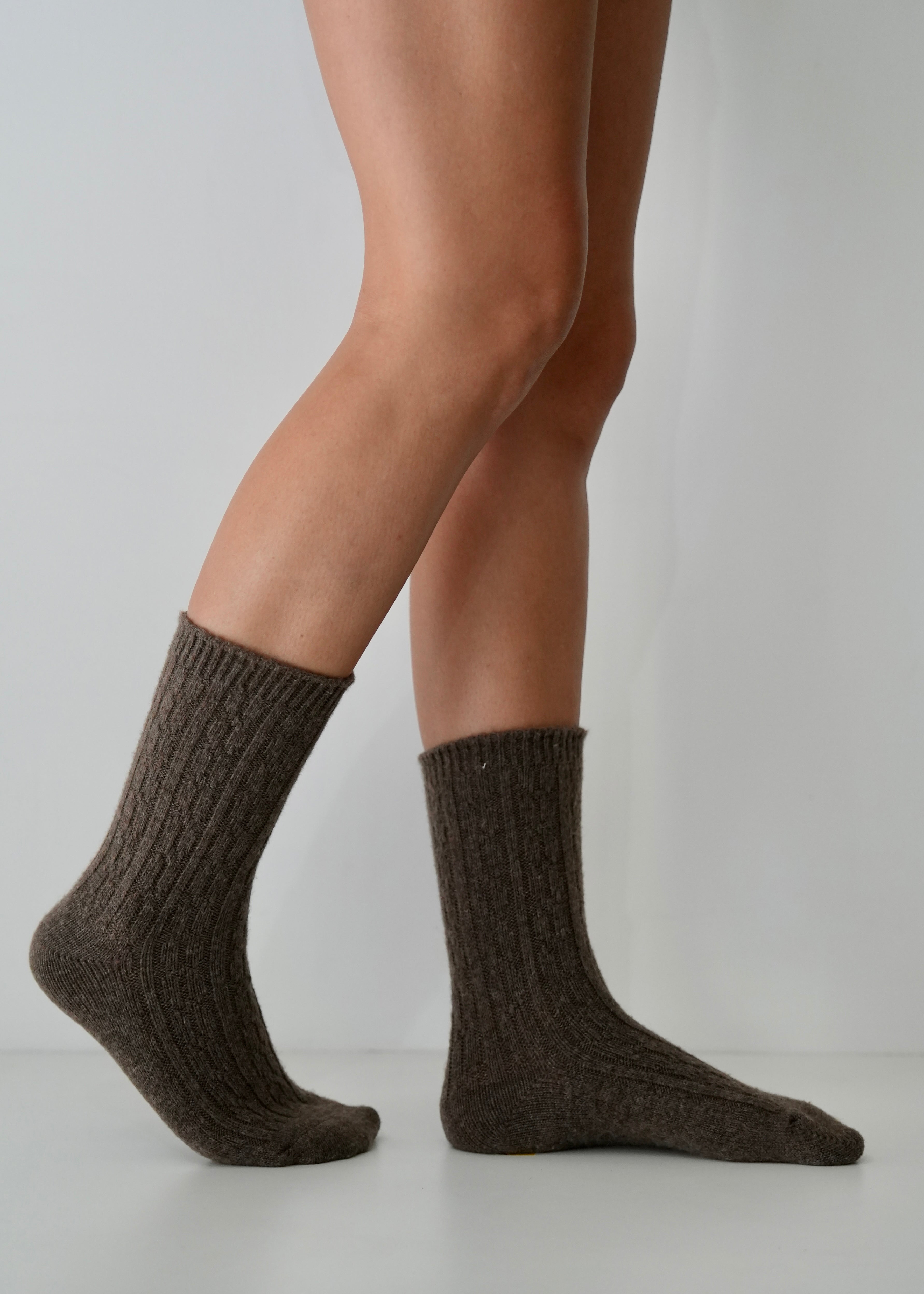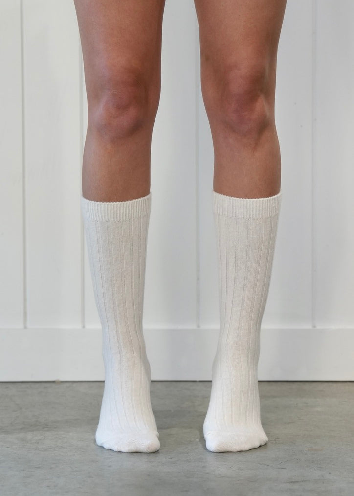 Ribbed Cashmere/Wool Knit Socks Taupe