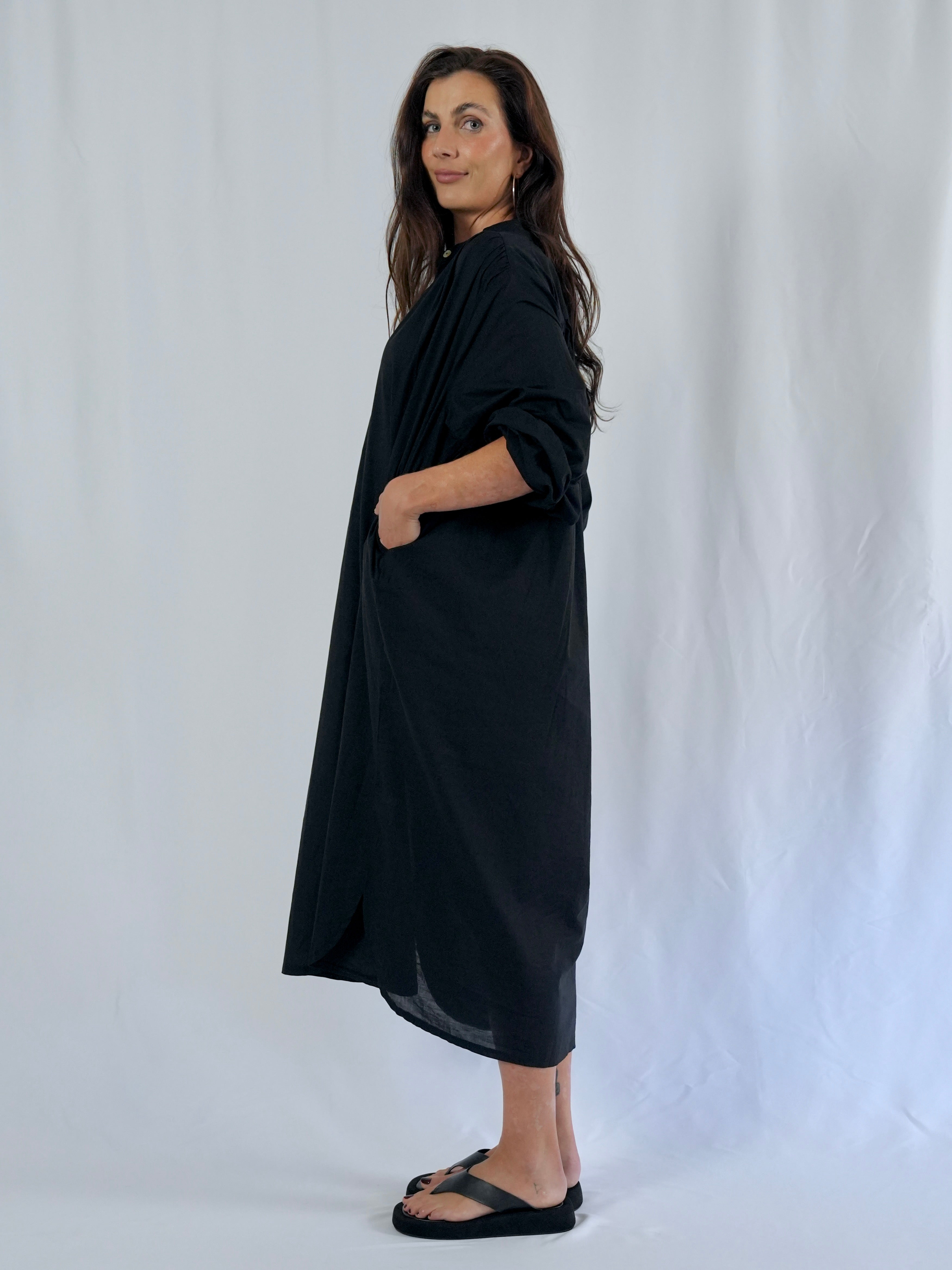 Style it loose for ease or add a belt for shape, & of course, with side pockets and proudly made in Australia.