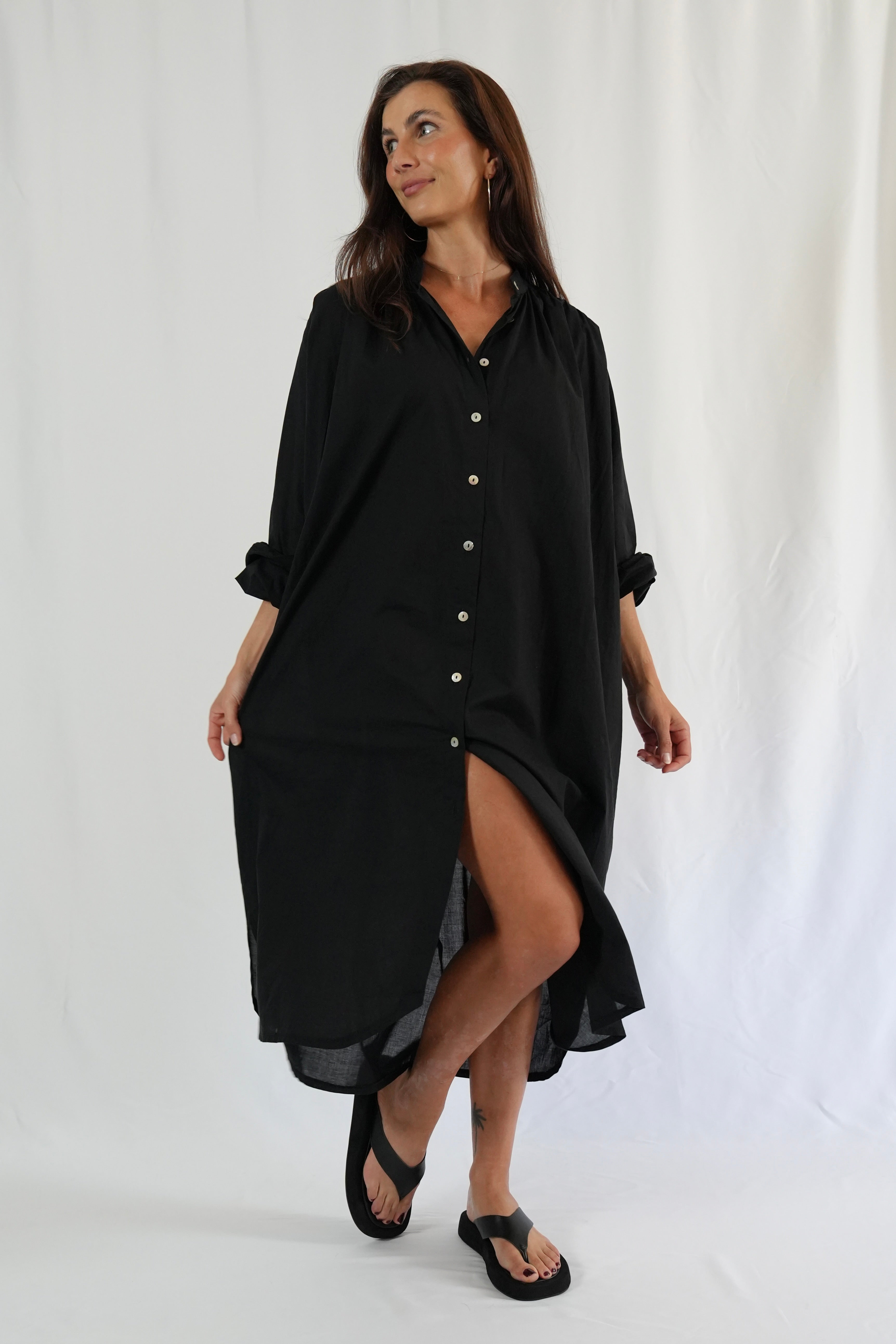 Style it loose for ease or add a belt for shape. Of course, with side pockets and proudly made in Australia.