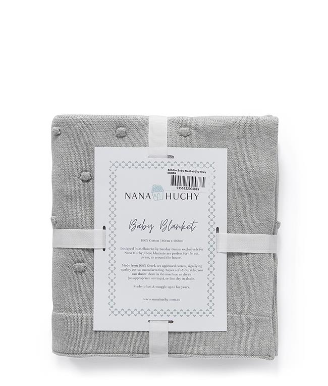 Designed in Melbourne by Sunday Ganim exclusively for Nana Huchy, these blankets are perfect for the cot, pram, or around the house. Made from 100% Oetek-tex approved cotton, signifying quality cotton manufacturing. Super soft and durable, you can throw them in the machine or dryer (on appropriate settings), or line dry in shade. Made to last and snuggle up to for years, these special blankets are premium quality and timeless design. A perfect new born gift.
