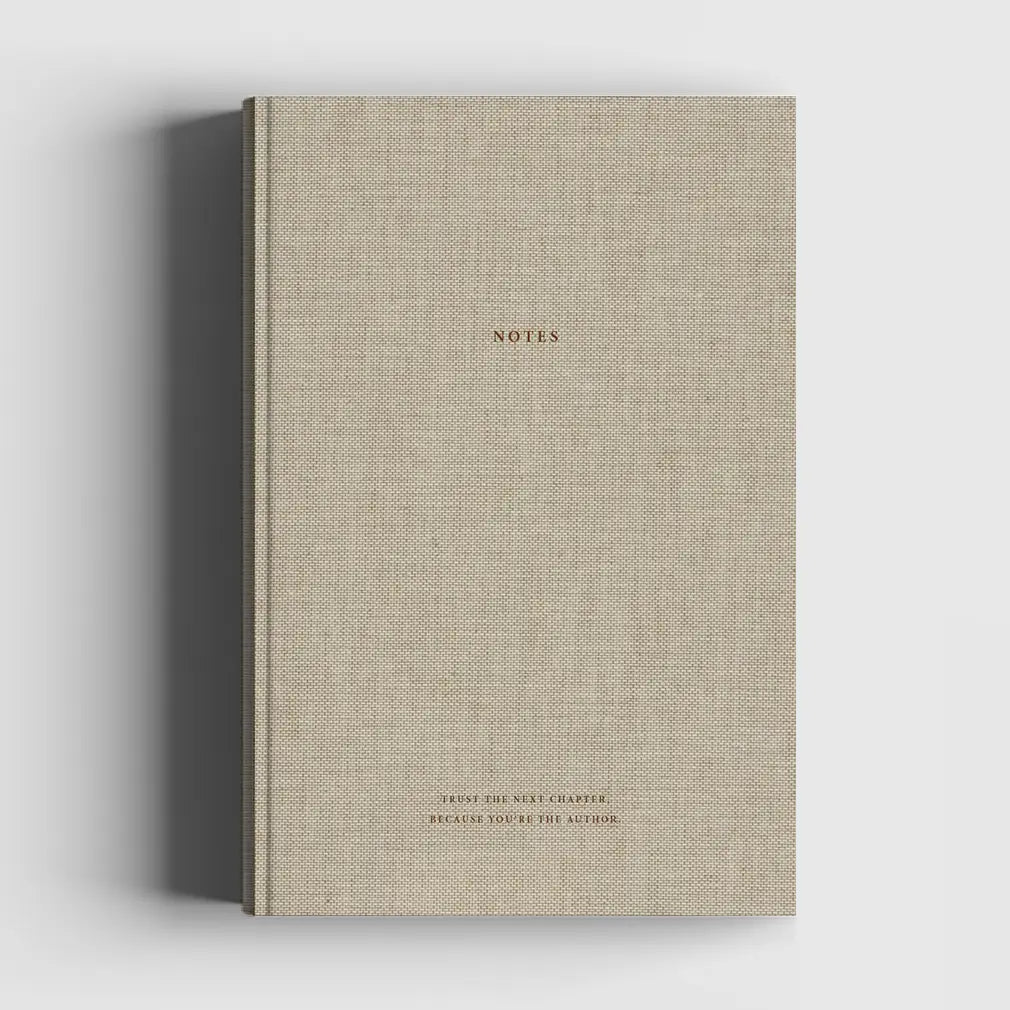 This notebook is a hardcover, finished with beautiful natural linen material and golden details.