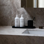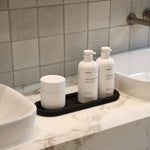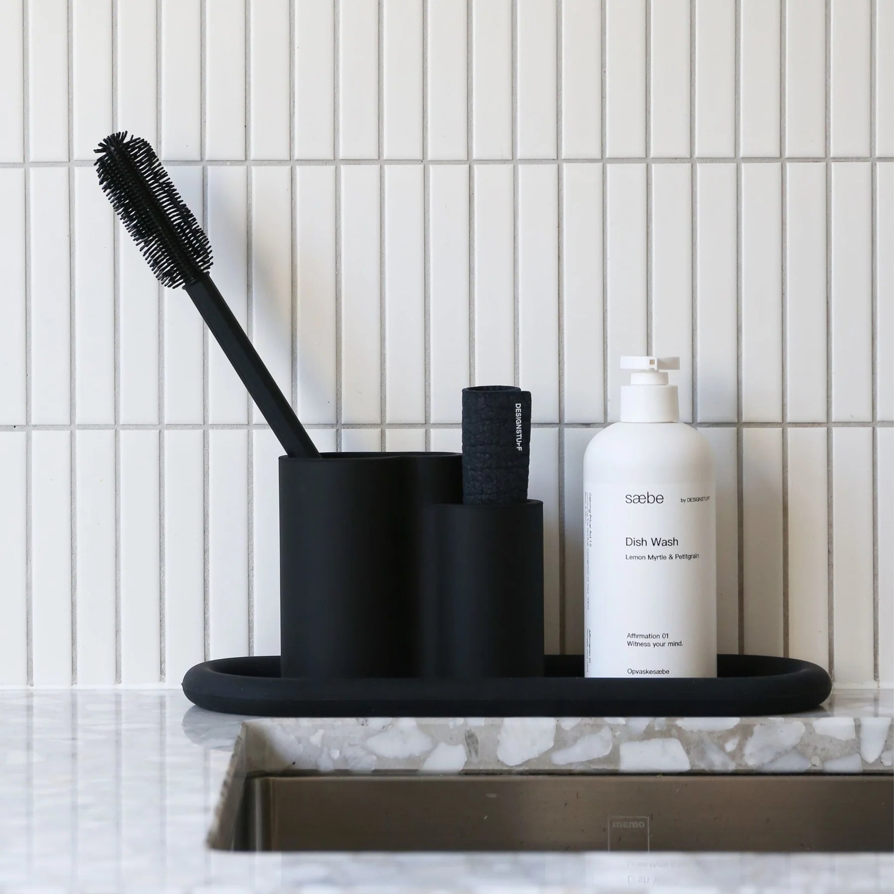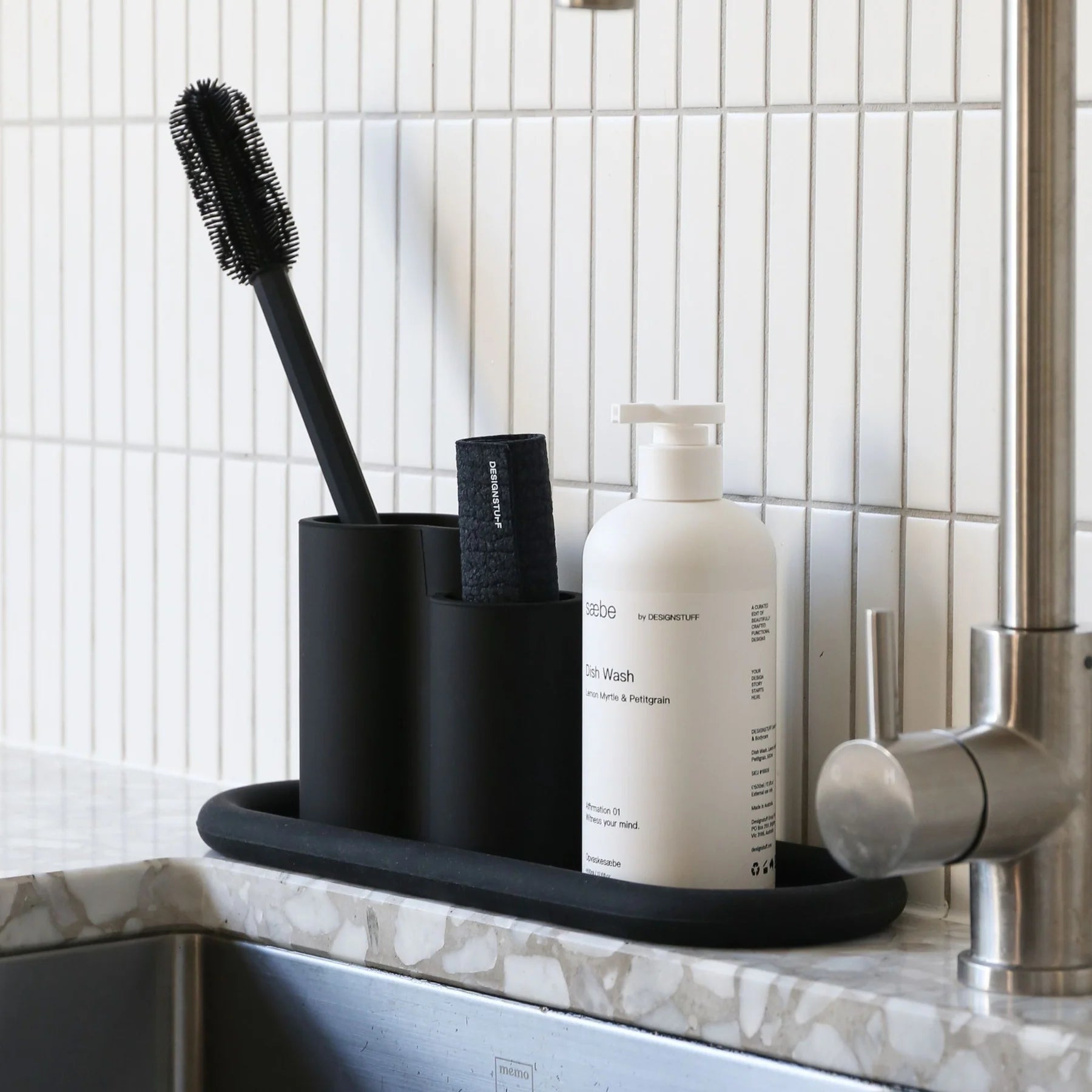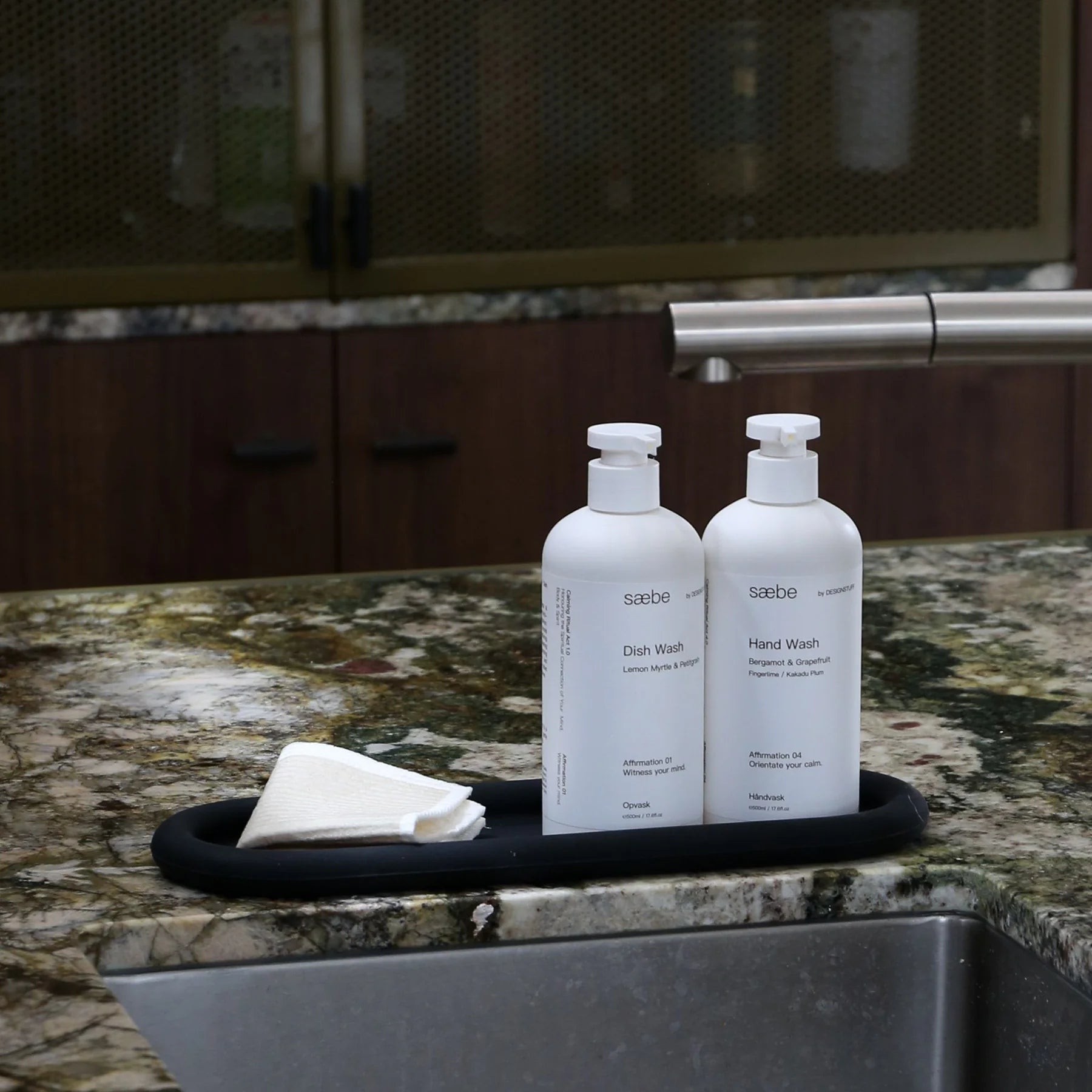Its elongated shape creates room for soap dispensers, hand soap and creams, or dish brushes, while the gently curved lip keeps everything right where it belongs. Made from durable, easy-to-clean silicone, it resists spills, wipes down easily, and stays put, making it a practical addition to kitchens, bathrooms, and beyond.