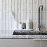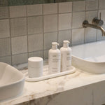 Its elongated shape creates room for soap dispensers, hand soap and creams, or dish brushes, while the gently curved lip keeps everything right where it belongs. Made from durable, easy-to-clean silicone, it resists spills, wipes down easily, and stays put, making it a practical addition to kitchens, bathrooms, and beyond.