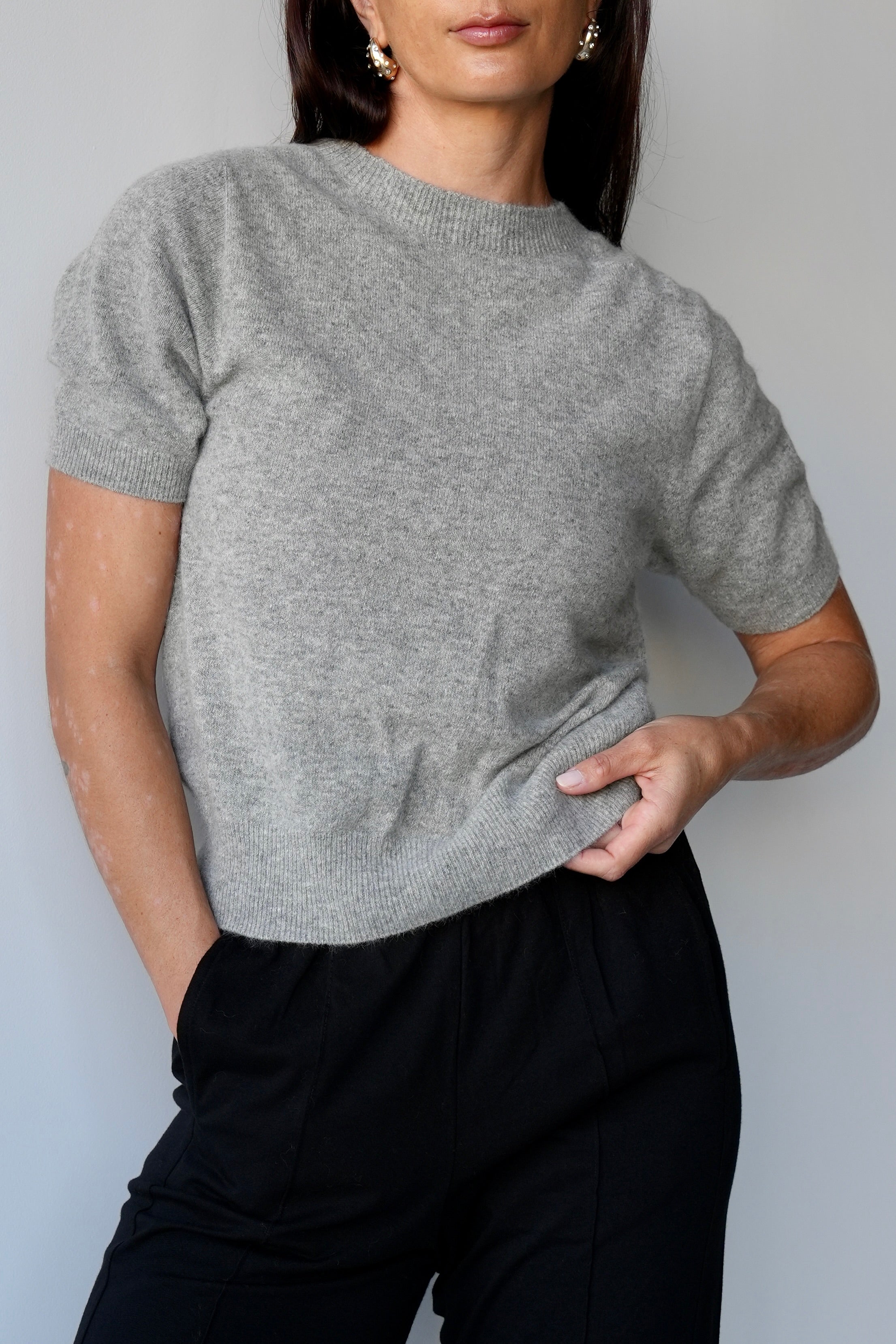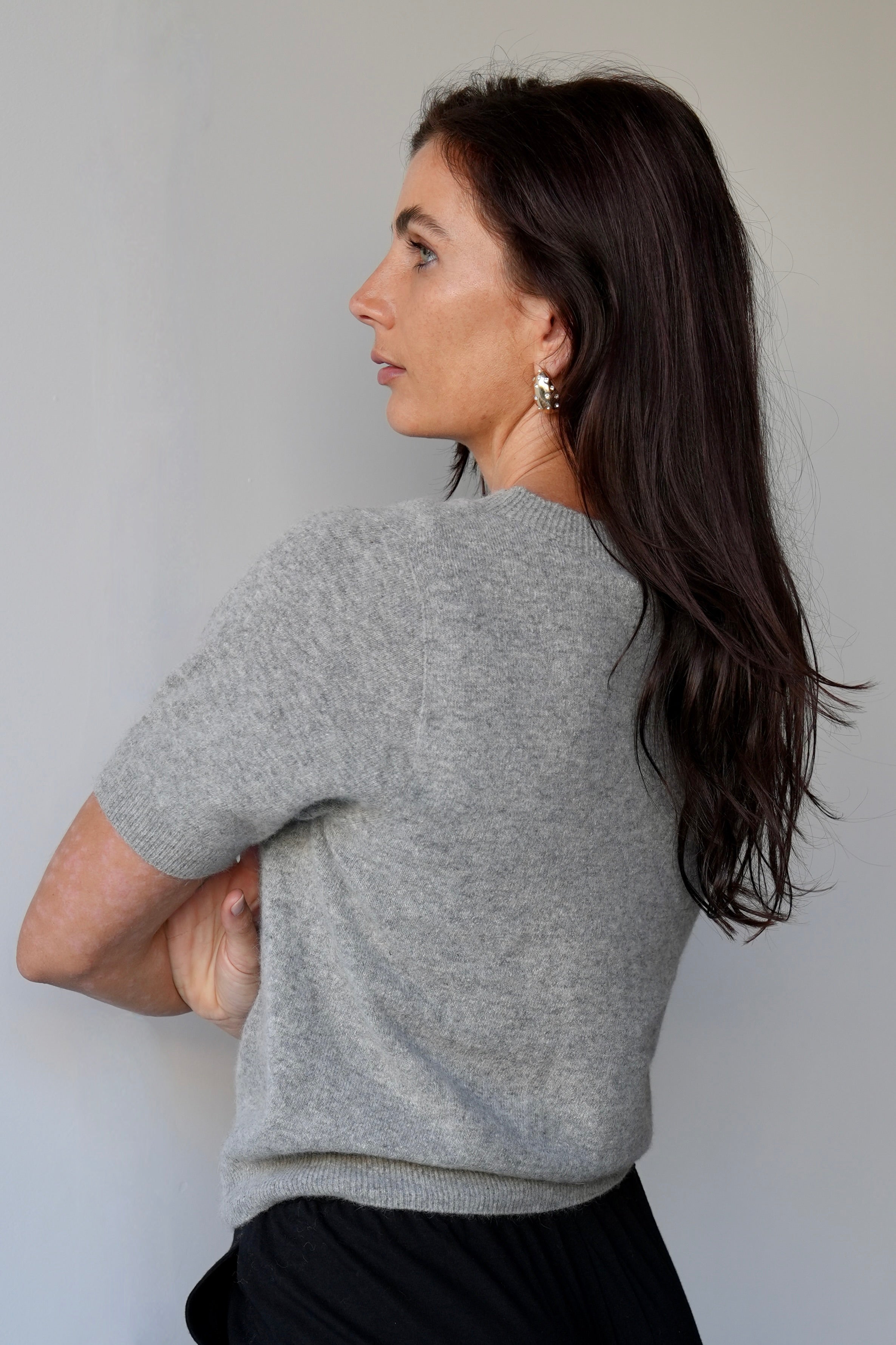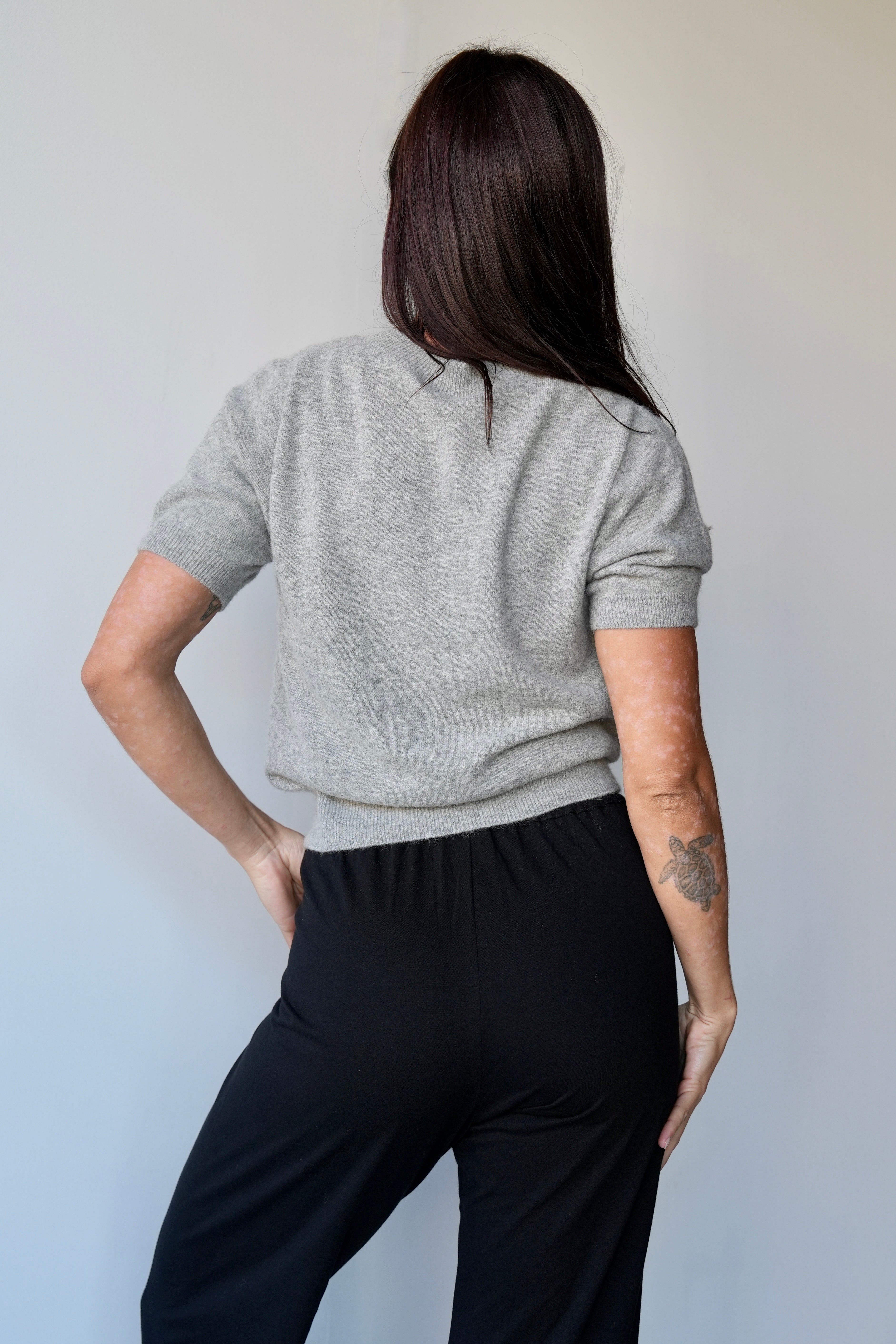 Luxuriously soft, fine knit cashmere short sleeve knit.