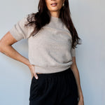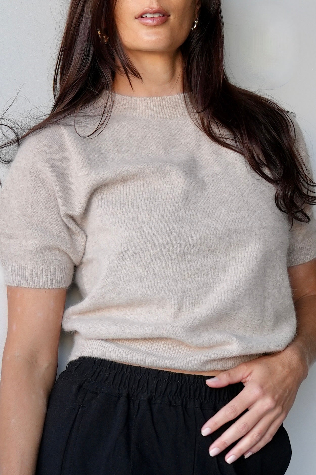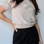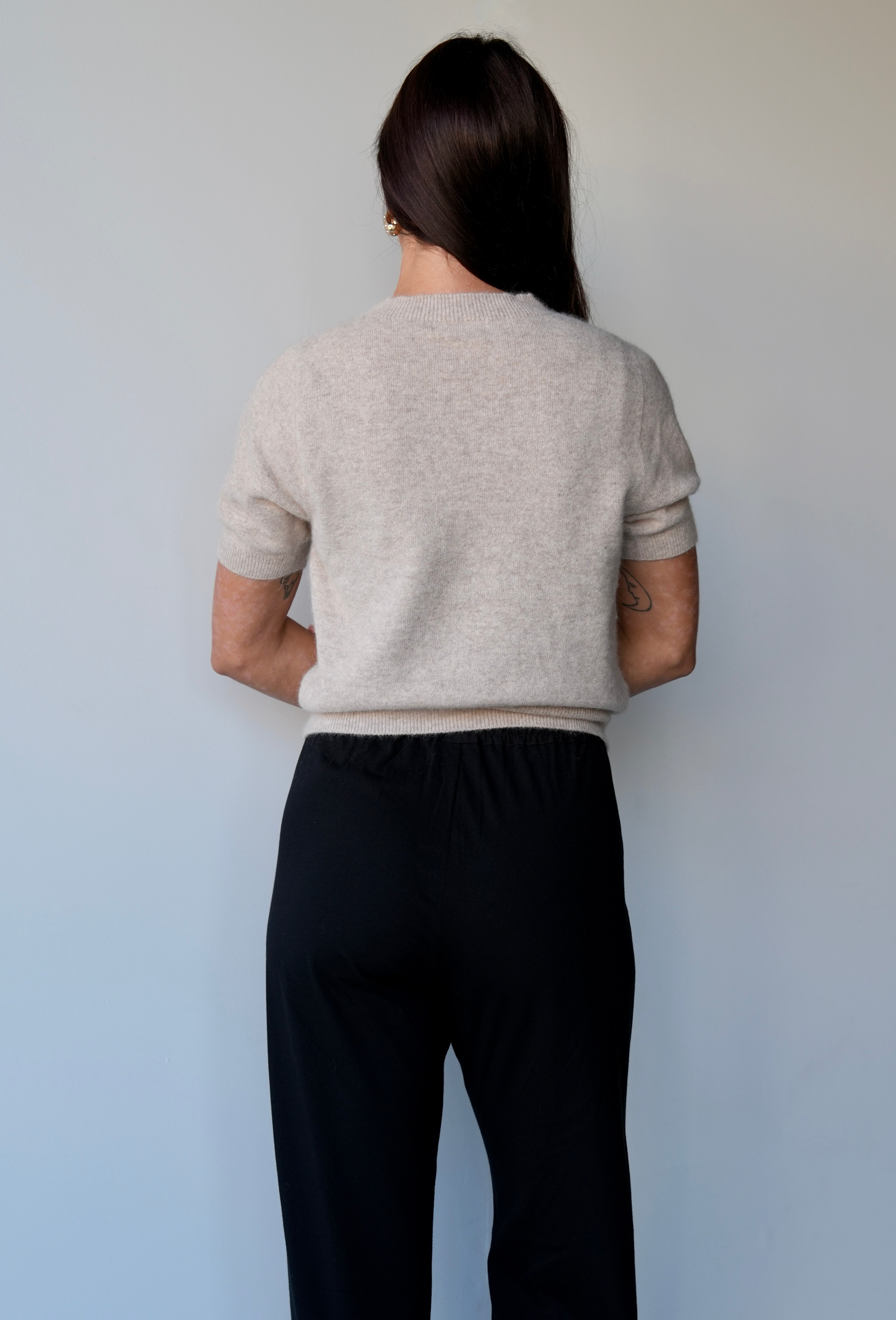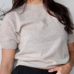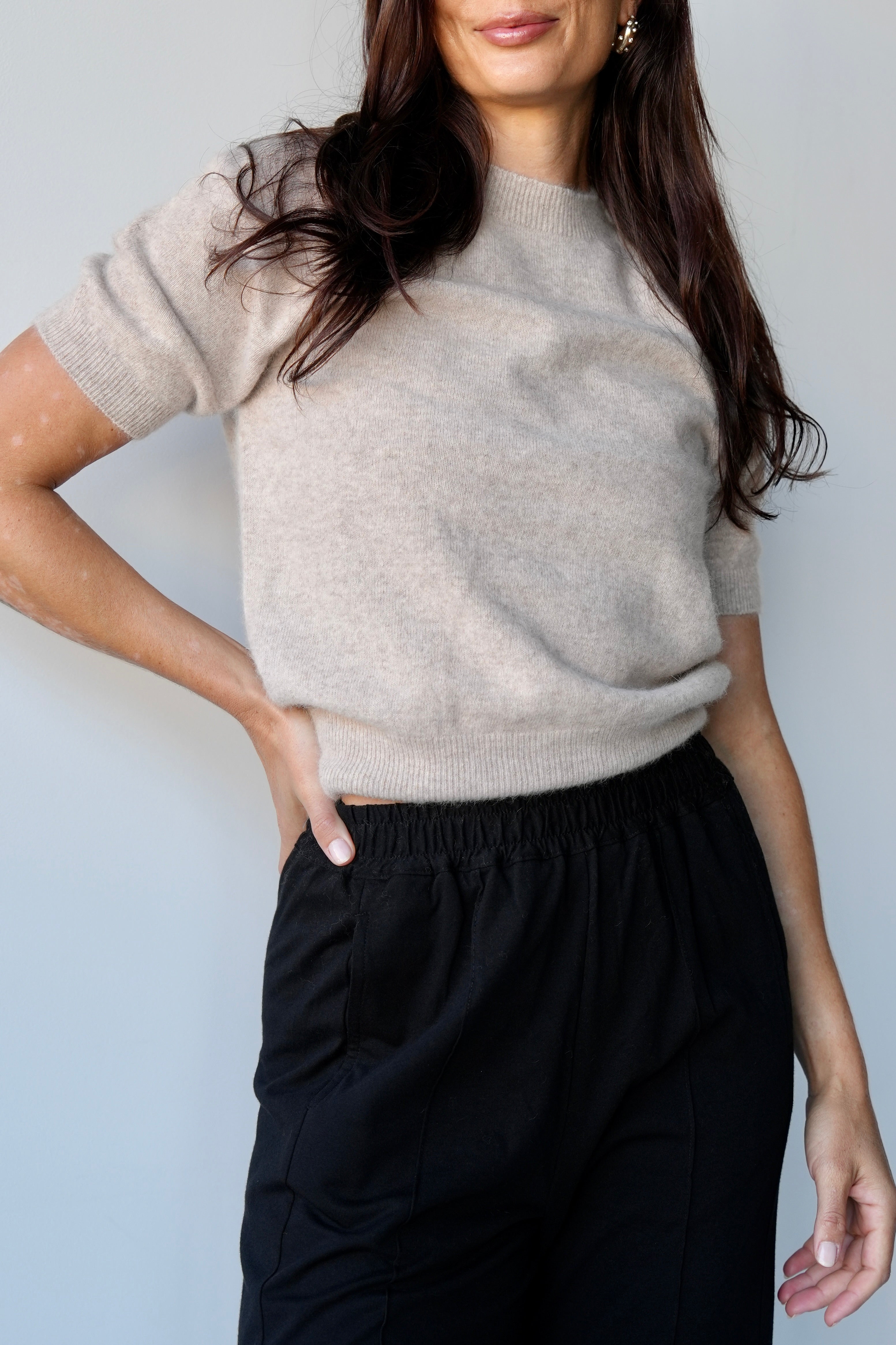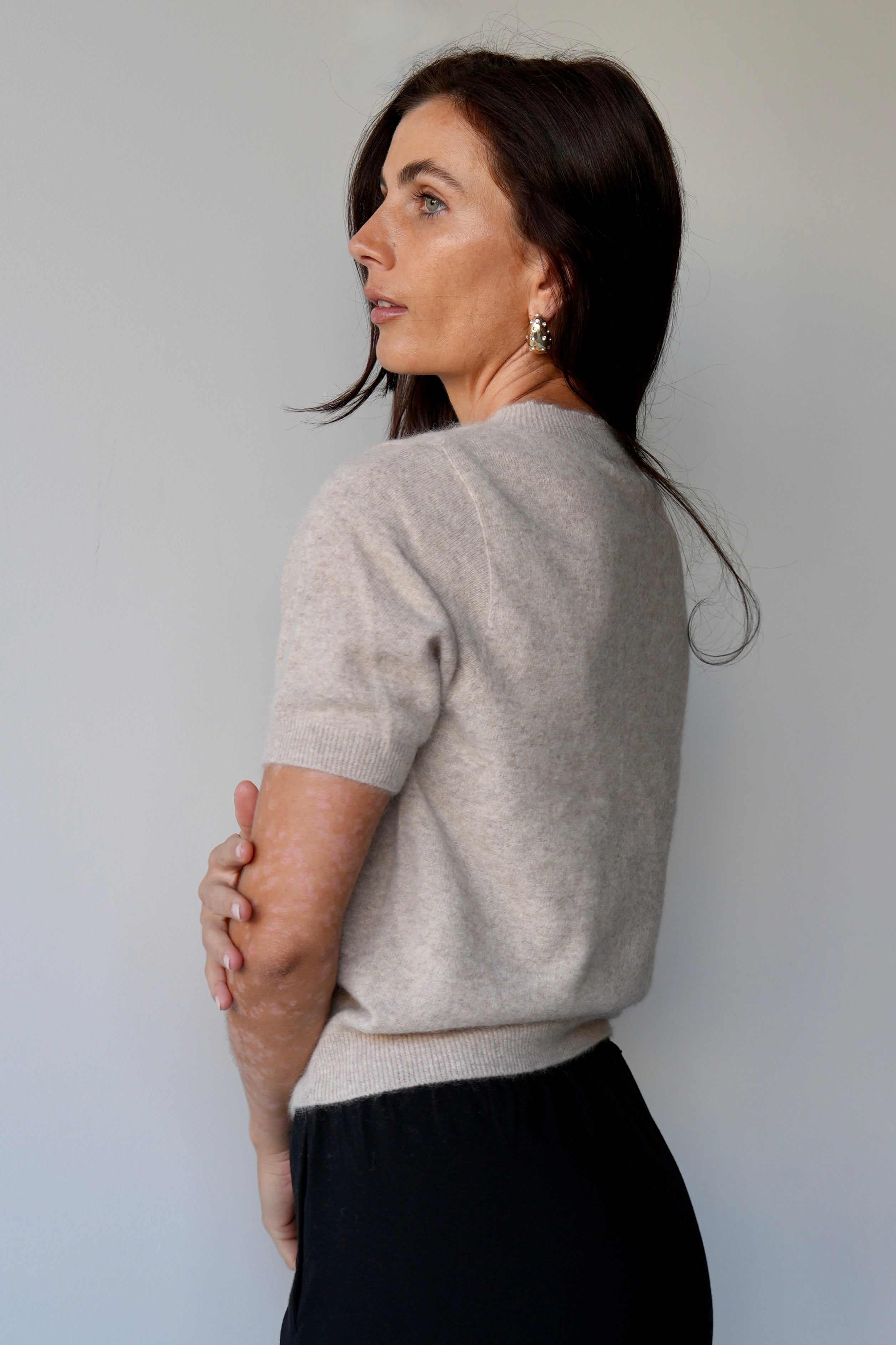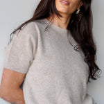 Luxuriously soft, fine knit cashmere short sleeve knit.