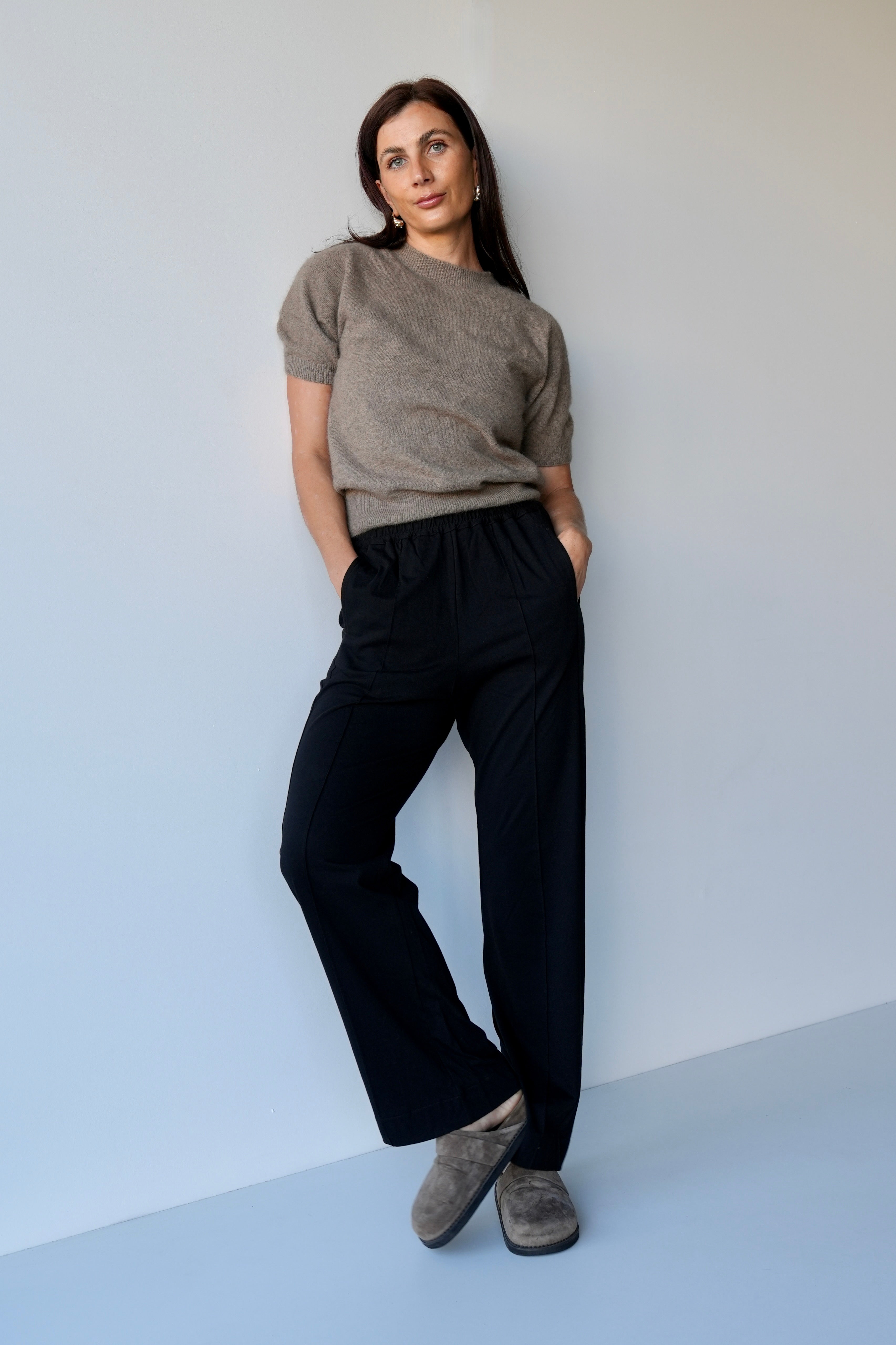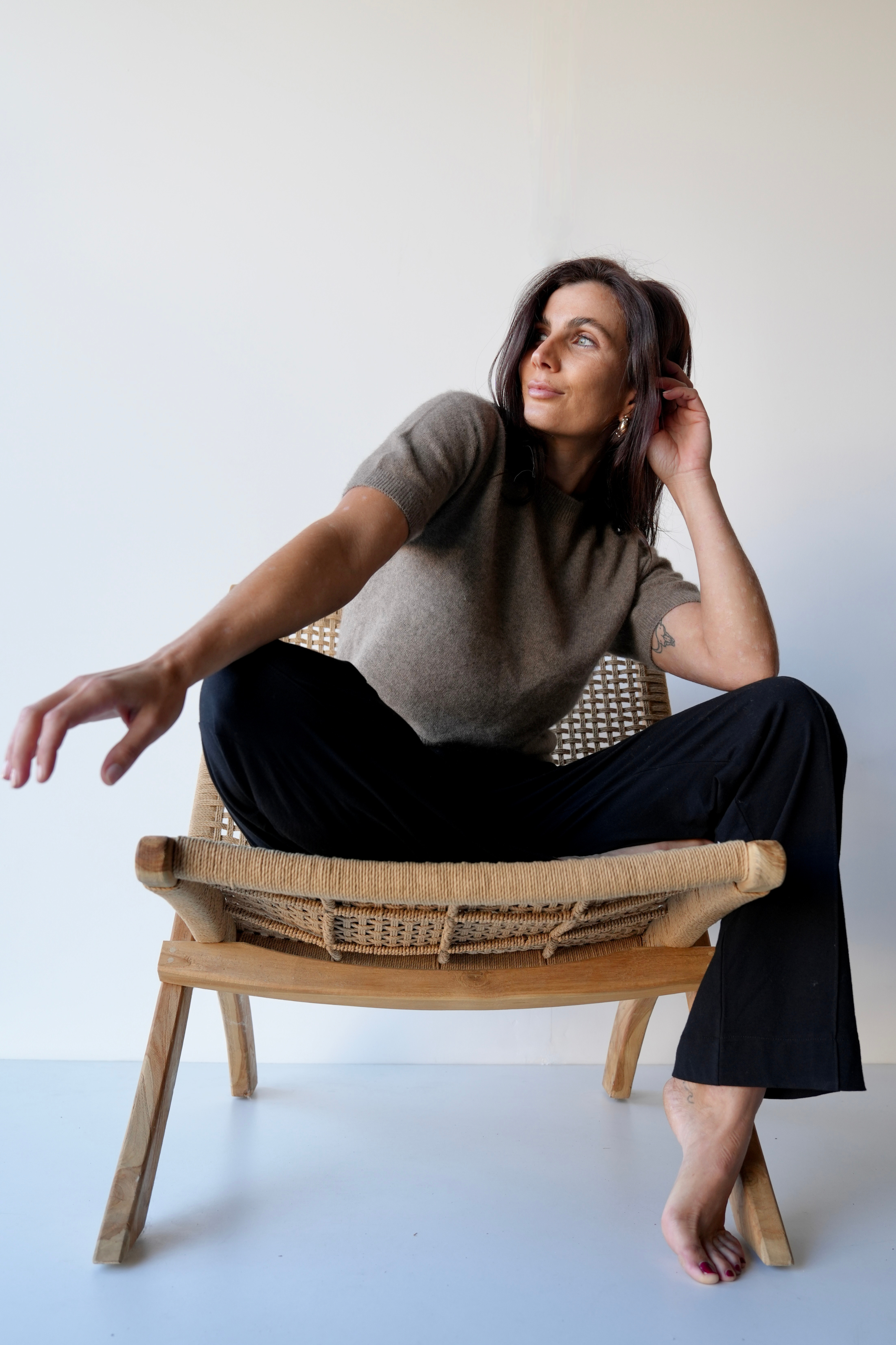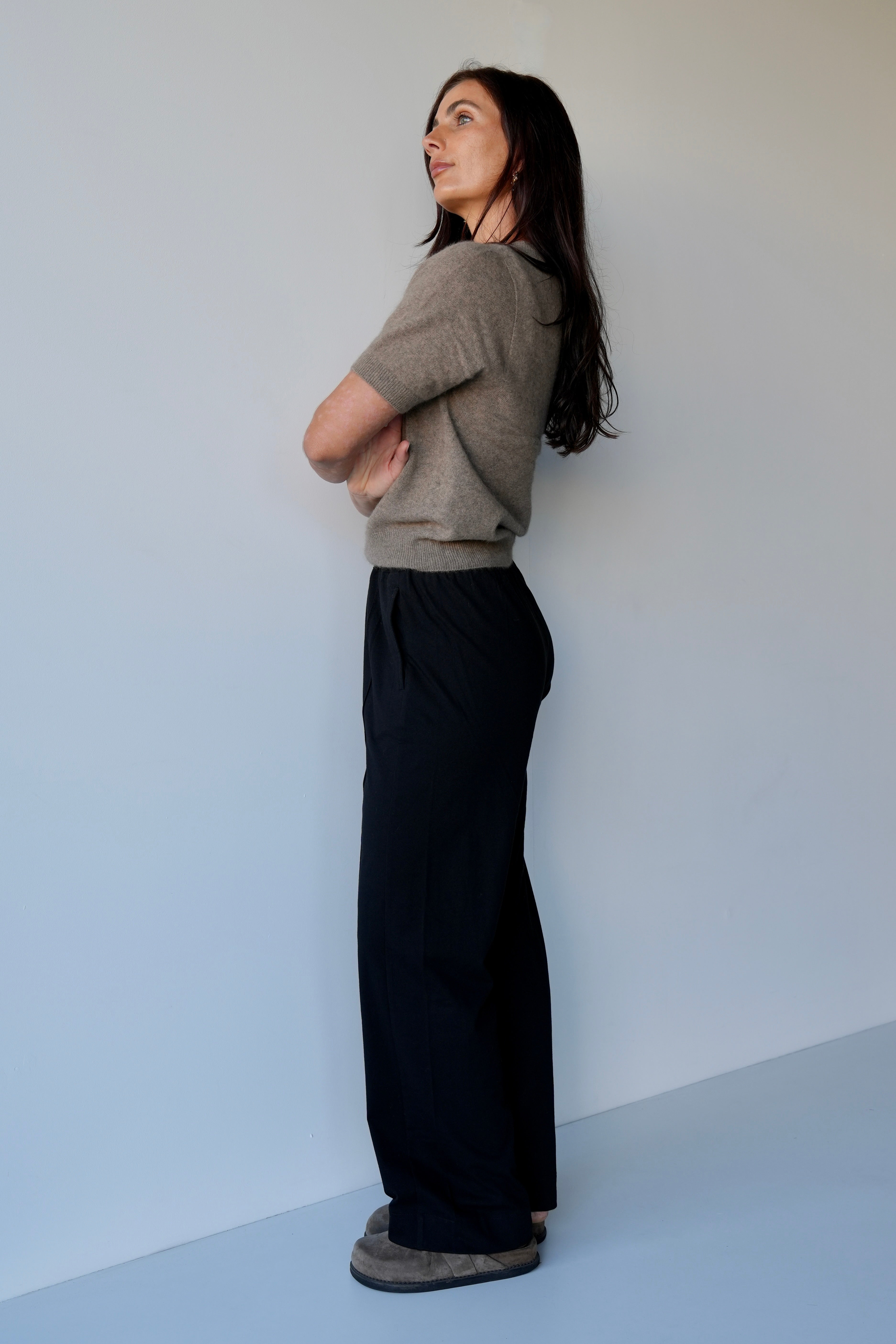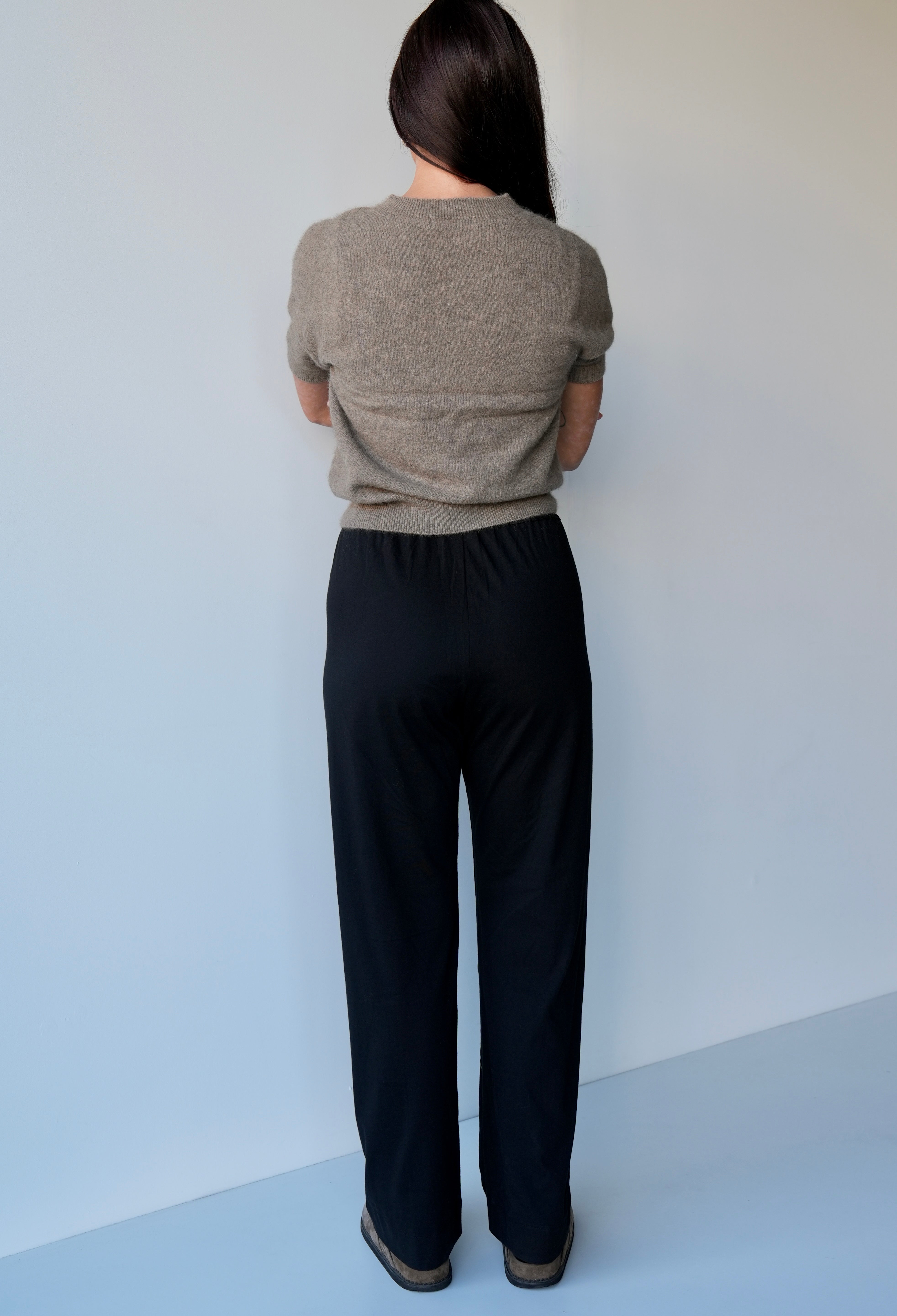 Luxuriously soft, fine knit cashmere short sleeve knit.