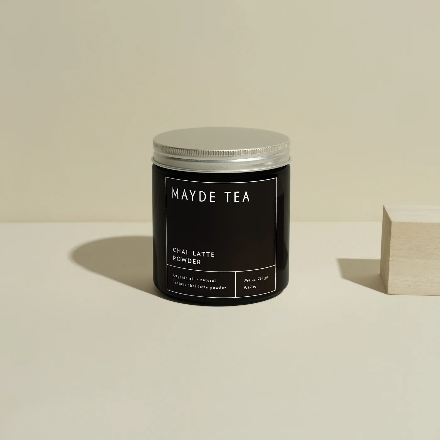 Add a finishing touch to your hot or cold chai latte with Mayde Tea Chai Sprinkles for eye-catching cups of milky chai.