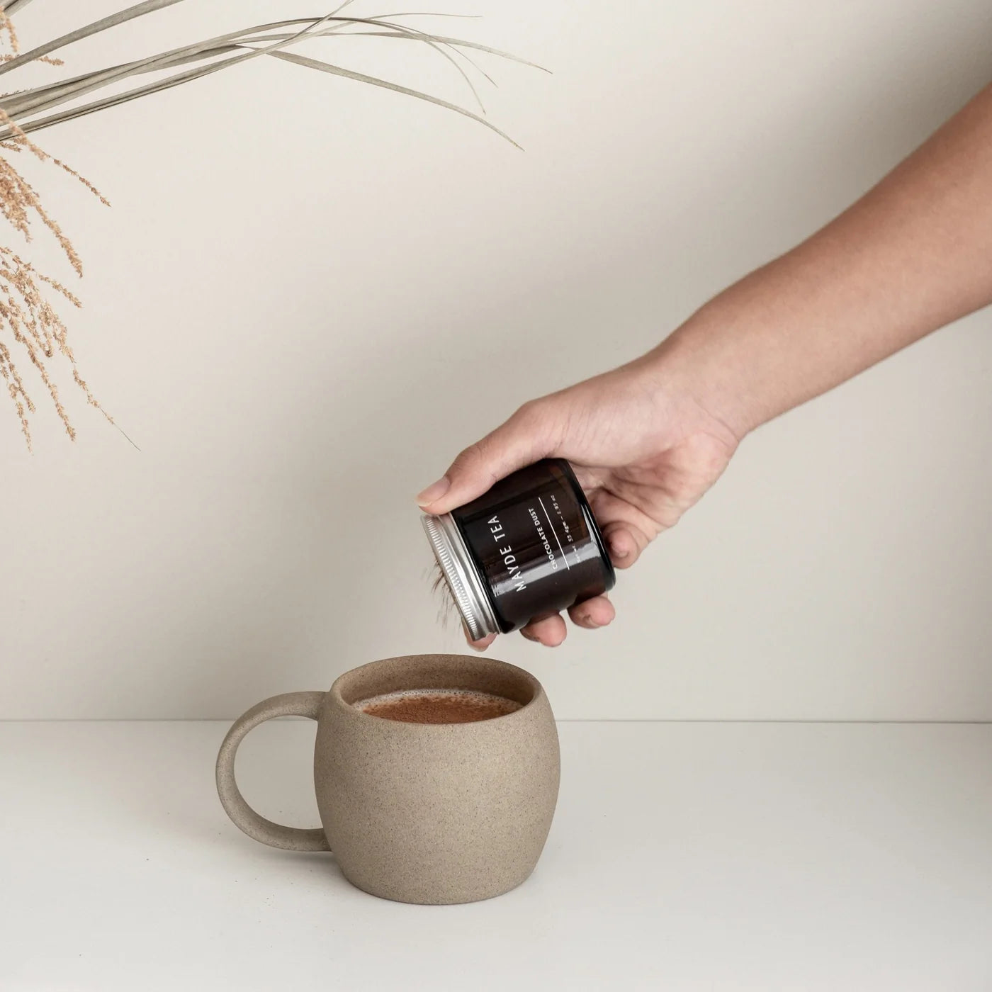 Our Chocolate Dust is a delectable blend of fine raw cacao powder, coconut sugar, cinnamon, and vanilla, providing a delightfully rich finishing touch for your favourite beverages and desserts. Perfect for enhancing hot chocolates, coffee, or sweet treats. Presented in a convenient glass amber jar with a sprinkle top.