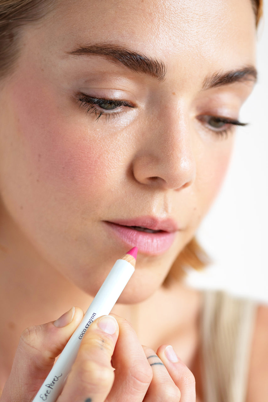 With a creamy formula our coco crayon glides on flawlessly, hydrating and conditioning ingredients keep your lips moisturised and juicy all day long. Coconut oil protects and repairs skin. Also featuring baobab seed oil – a wonder tree full of antioxidants, vitamin A,B,C & omegas 3,6,9 and fatty acids. Get an extra skin boost with silica and oryzanol. Define and blend with this tapered slim crayon that’s easy to apply anywhere you want a colour pop.