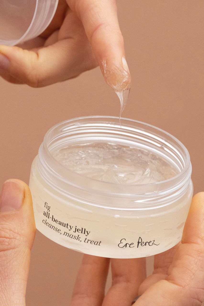 Wear the jelly overnight as a mask to lock in product & hydration. With a botanical formula of natural ingredients perfect for even the most sensitive complexions. Featuring skin-friendly fig, rich in antioxidants & vitamins. Plus a dash of cleansing clove, a natural stringent that tightens pores, while also stimulating blood flow. Chamomile is added to calm & sooth skin.The ultimate safe jelly, a natural alternative to petroleum jelly that’s made with love and no nasty ingredients. Ideal for ‘slugging’, but healthier. This is the all-purpose jelly your skin’s been dreaming of.