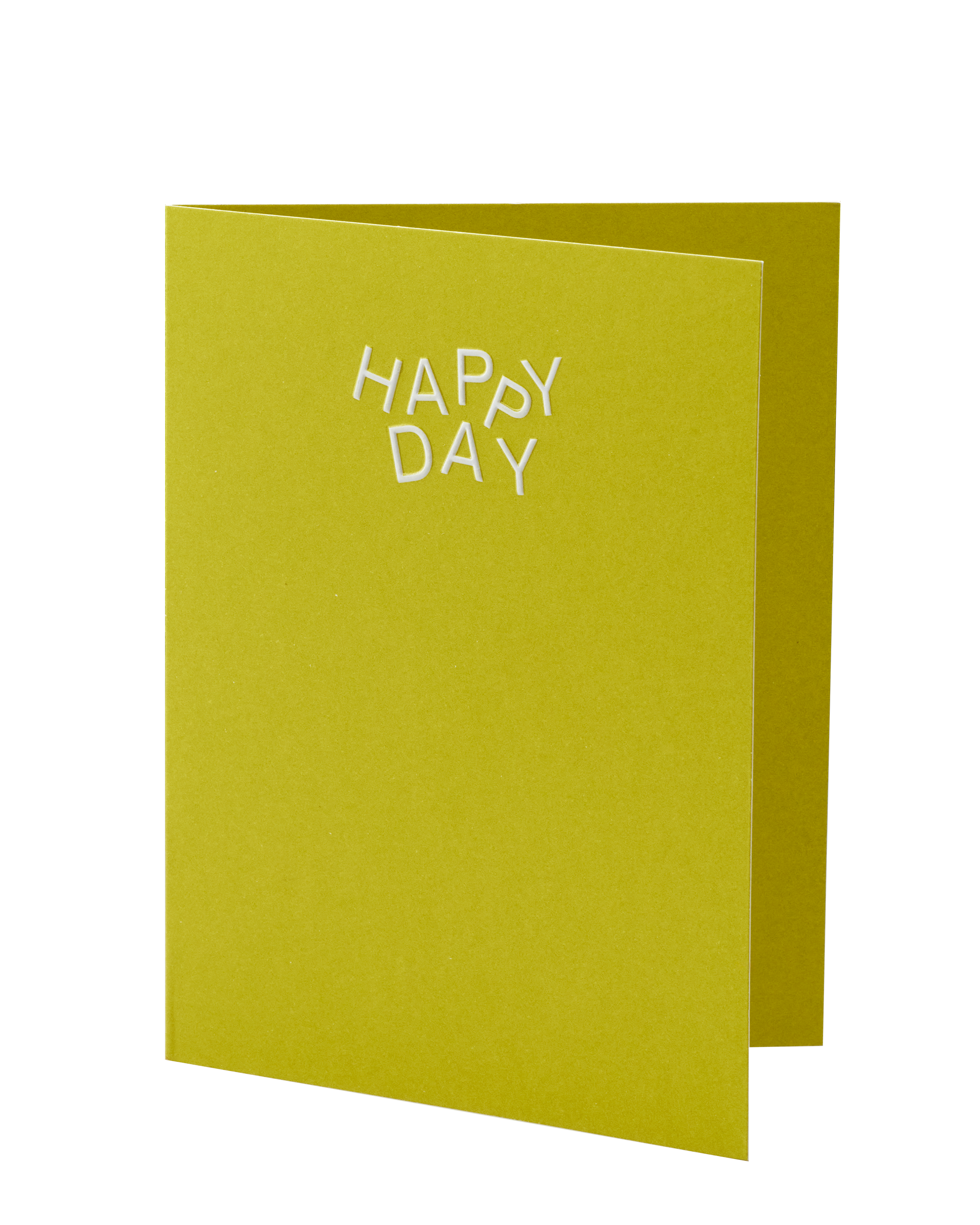 Every day can be a Happy Day. This playful greeting card is mindfully made in Melbourne, the card stock is FSC certified and 350gsm in weight - nothing flimsy about it. Design finishes include raised emboss detailing in white. Blank inside and comes with a semi-translucent envelope.