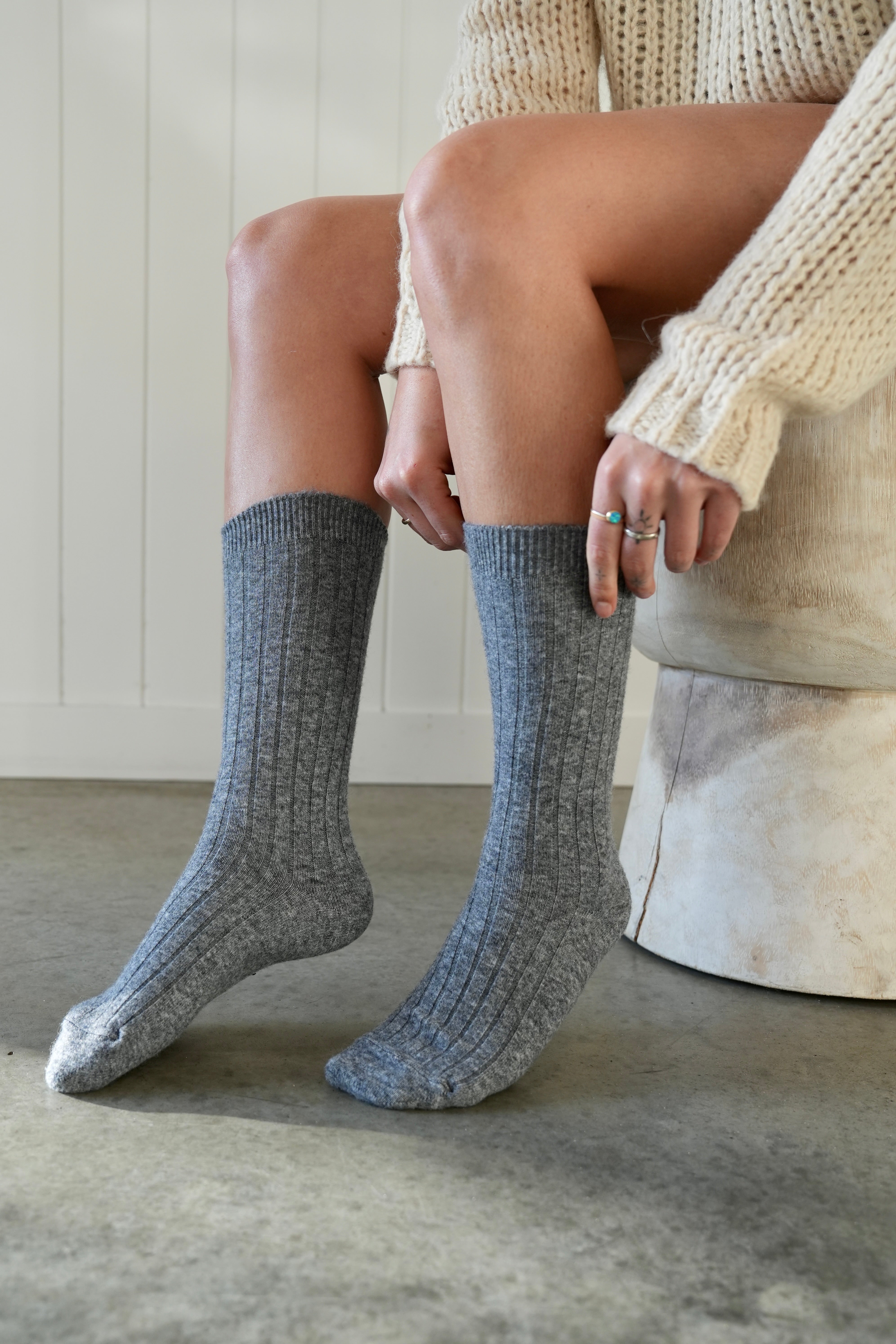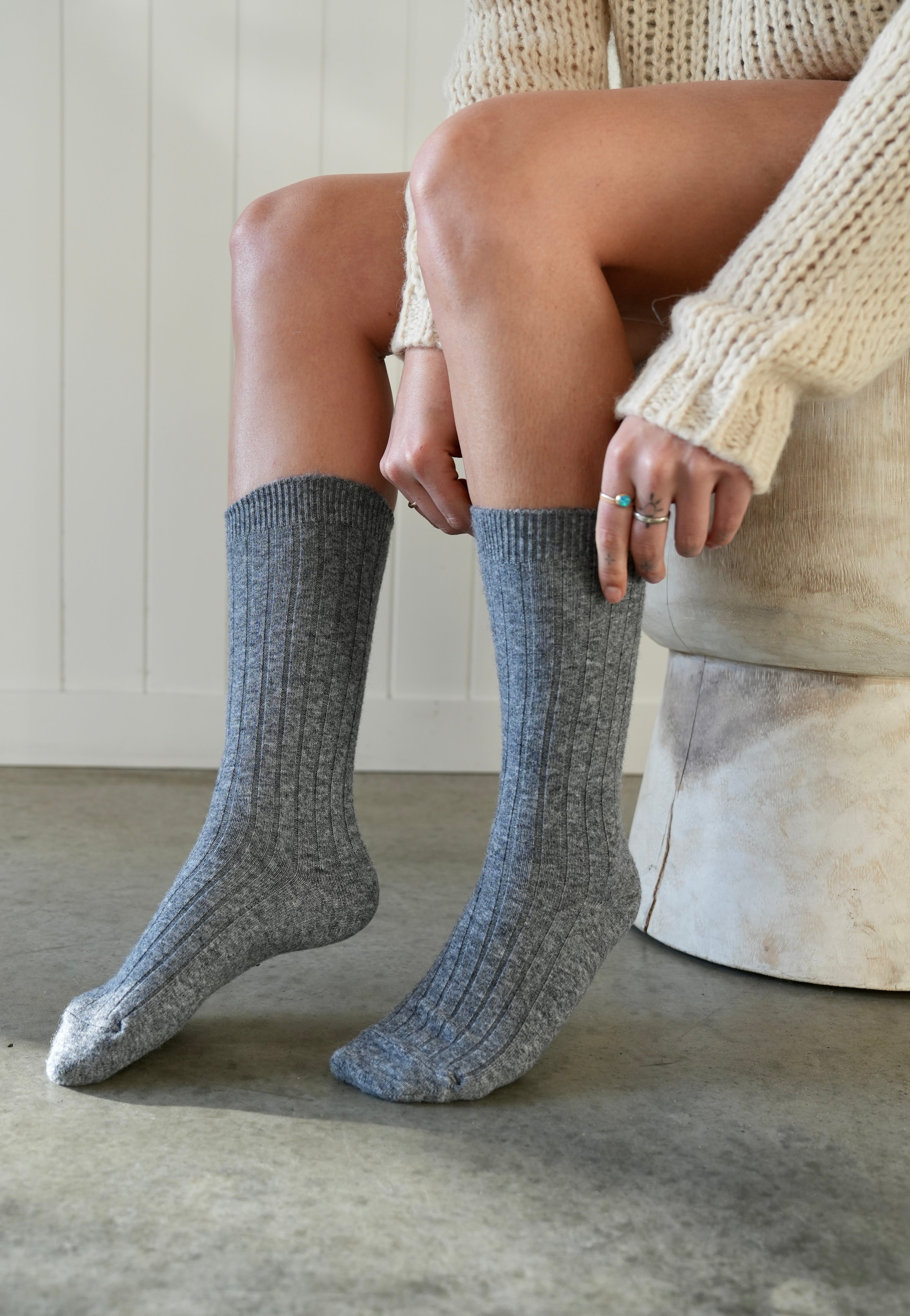Lambs Wool High Socks Charcoal