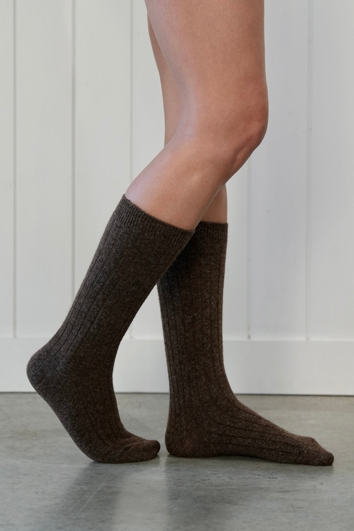 Lambs Wool High Socks Chocolate