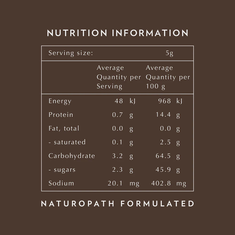 -Chlorophyll content helps to alkalise the body and aid in natural detoxification.