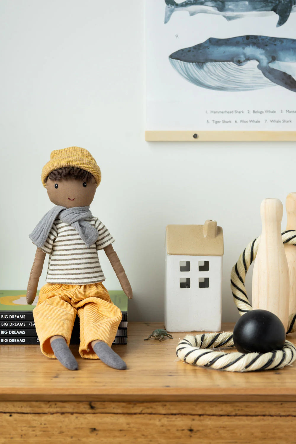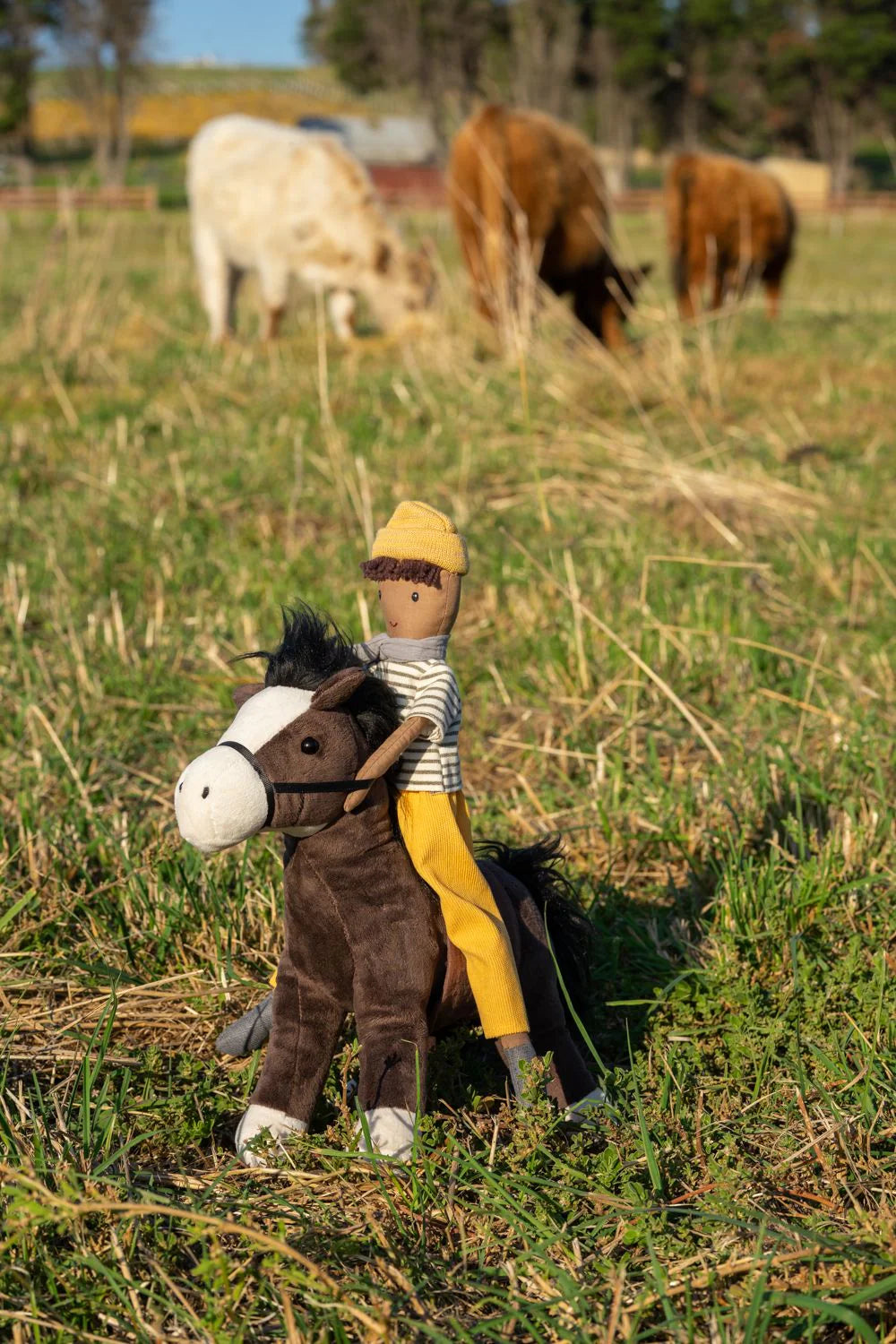 The only vegan dairy farmer you'll ever meet, Master Albert is a dreamer who secretly wishes he was working at Vegie Bar or Smith + Daughters in Melbourne’s inner north - then he would at least get some lunch he could eat. Thankfully, in a year or two, he will finally be old enough to move away from his family’s Shepparton farm & join his older brother Jack in his cool Fitzroy loft. Maybe Albert will even learn an instrument, join a band! He could be a famous bassist like Paul McCartney, Cliff Burton or Flea! Cuddly & unique, this handsome lad in his striped tee likes reading science fiction novels, playing chess with Master Jack (who annoyingly always beats him) & finding shapes in the clouds.