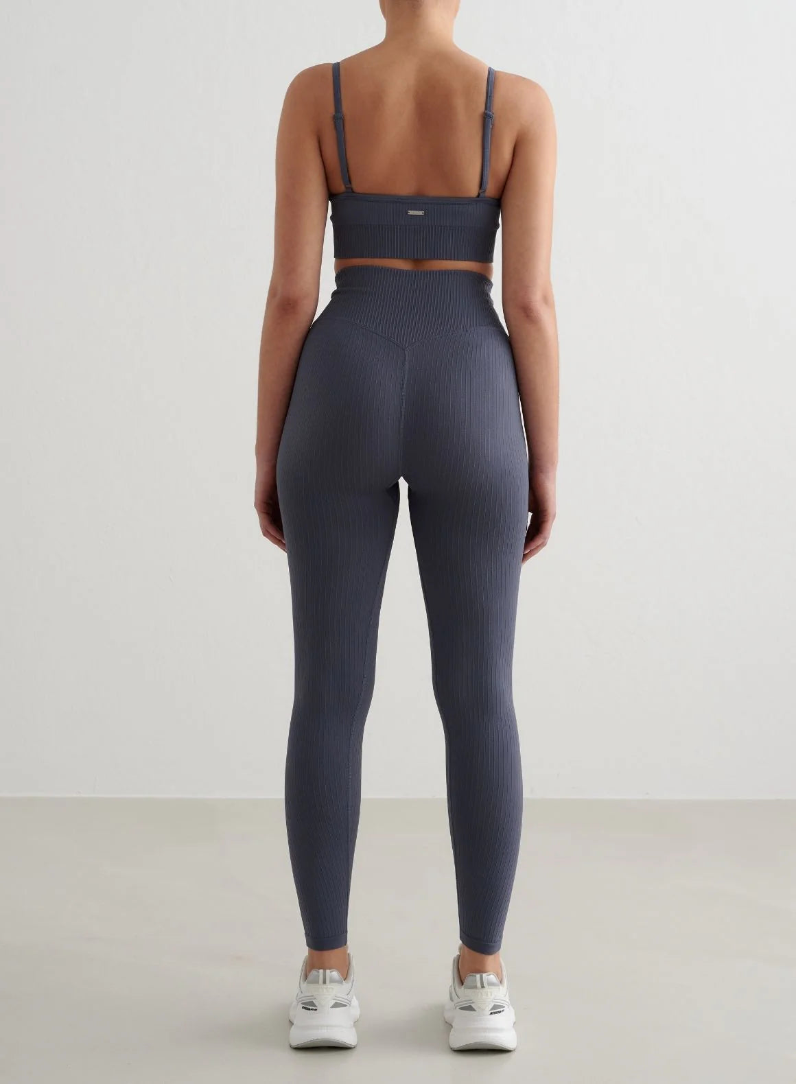 Storm Blue Ribbed Seamless Tights are made from a soft and flexible four-way knitted ribbed fabric that follows the body's movements The ribbed tights have a supportive high waist, are moisture-wicking and perfect for both workouts and everyday wear. Match with Ribbed Seamless tops to create a matching set.