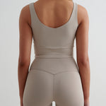 Our Sense Bralette is made from our luxuriously soft Sense fabric and is a hybrid between a bra and a tank top. The Sense Bralette has a flattering v-cut front and back, removable pads and a metal aim’n-logo badge.