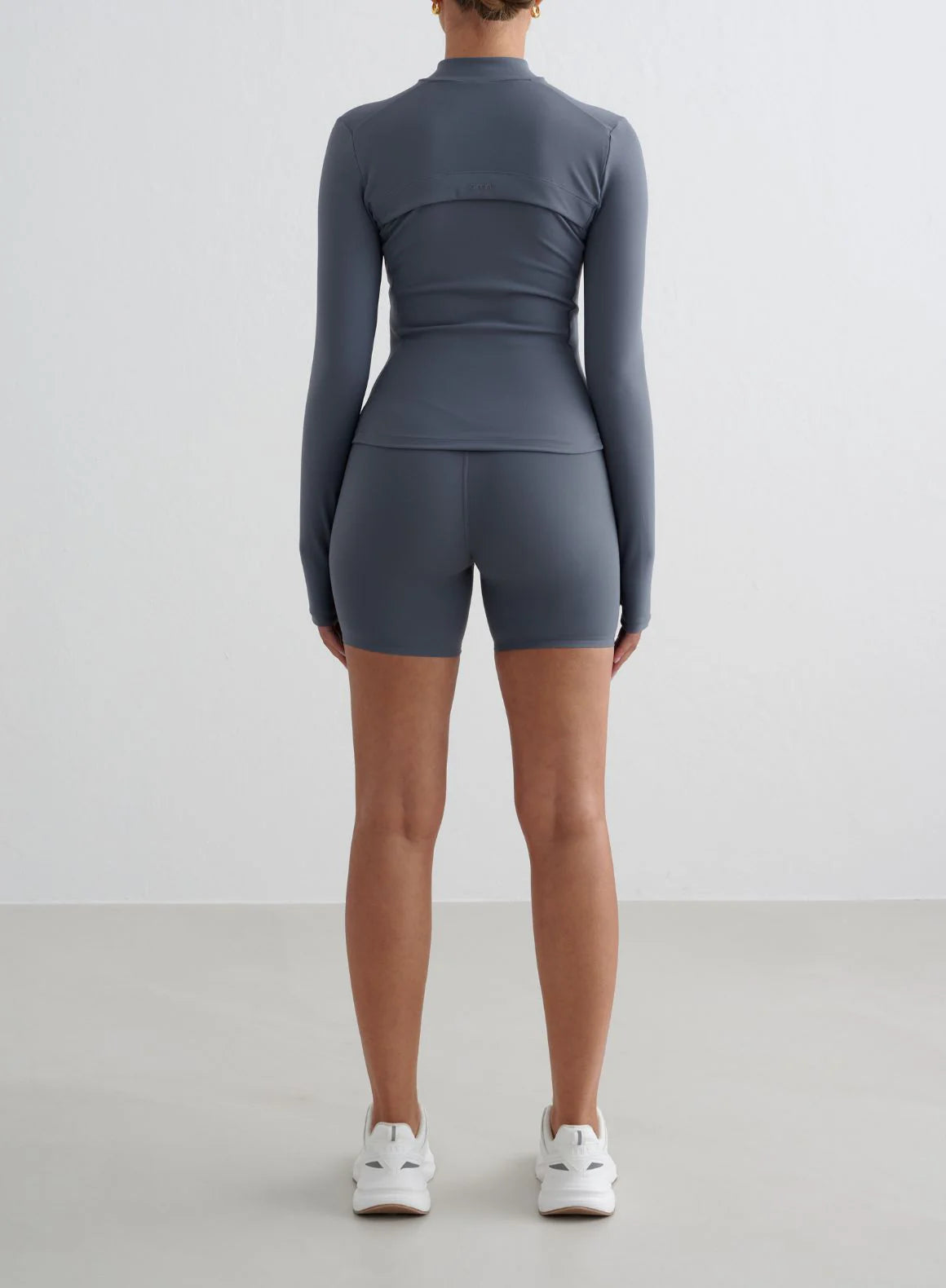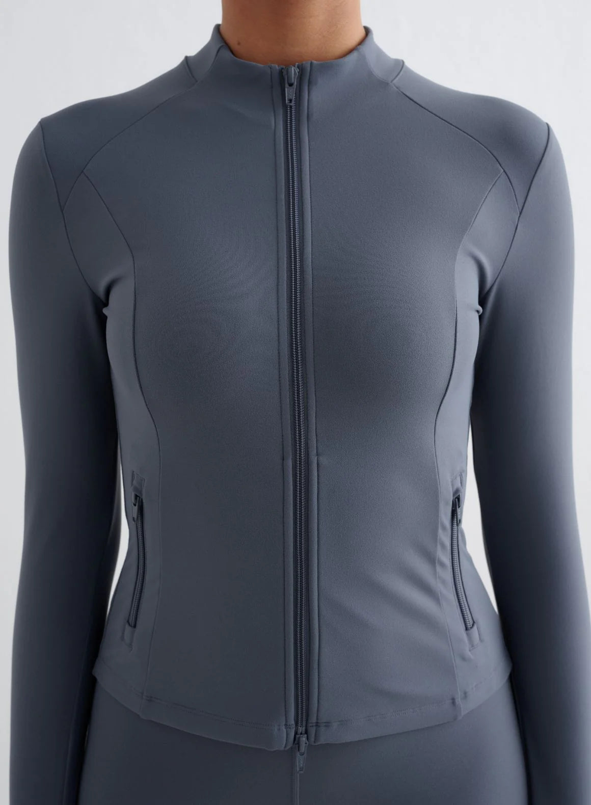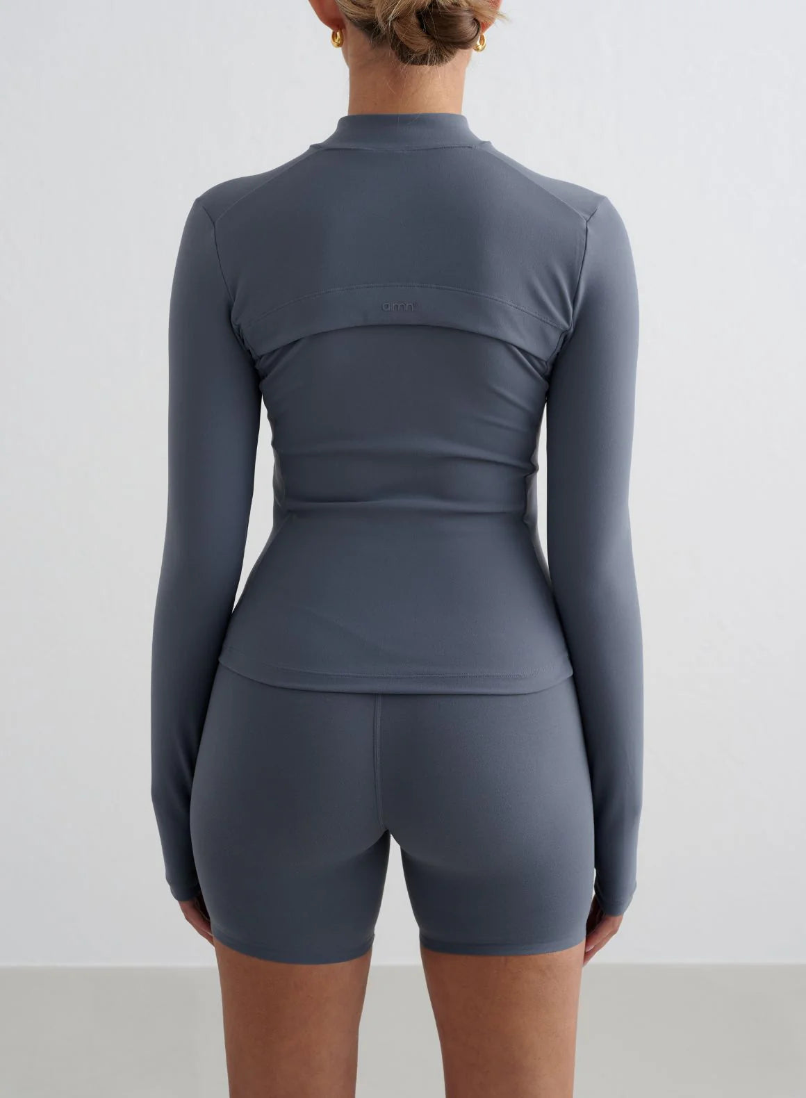 Storm Blue Sense Zip Jacket is crafted from our peachy soft Sense fabric. The tight fit activewear jacket has two-way zip, meaning it can be opened from both ways, and has a ventilated back yoke for added functionality and breathability. The zip jacket has two zipped hand pockets and thumbholes. Sense Zip Jacket features an aim’n logo at the center back. Pair Sense Zip Jacket with Storm Blue Sense bottoms to create a matching set.