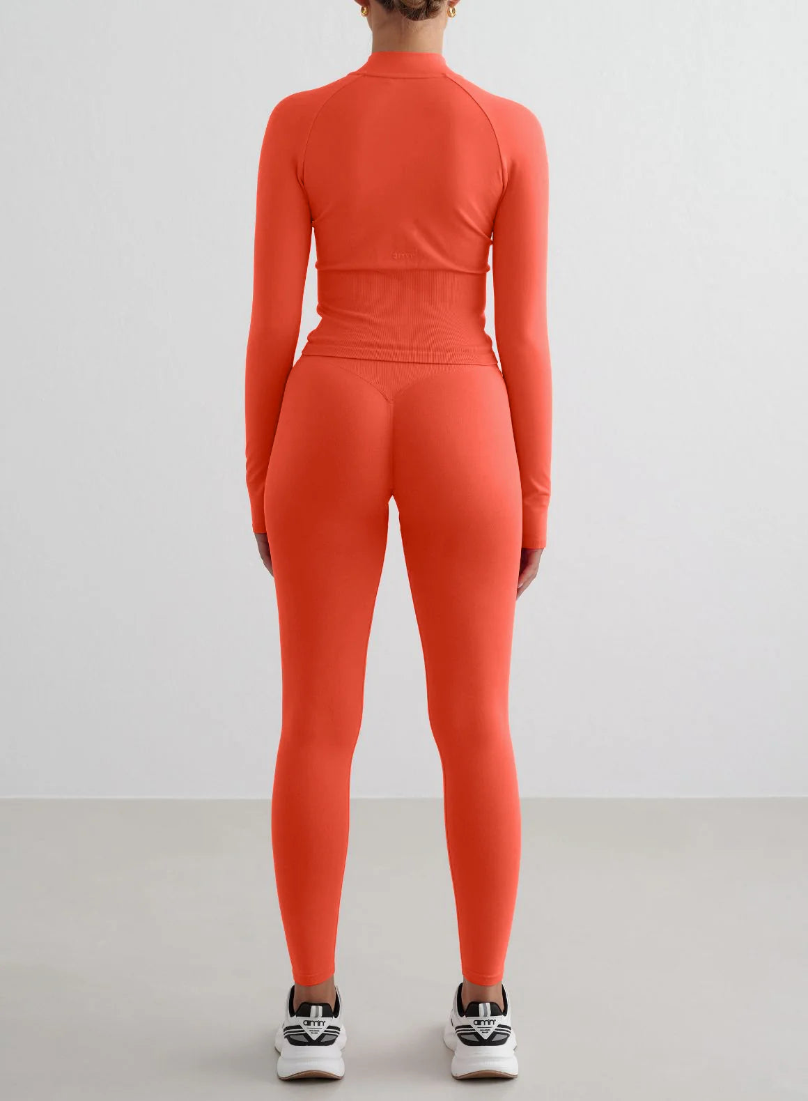 Shape Seamless Zip Jacket is crafted from a soft, stretchy, and breathable seamless fabric. This figure-hugging jacket offers a second-skin feel and is ribbed underneath the bust for a contouring effect. The zip jacket features thumbhole sleeves and a full-length zip. The long sleeved jacket has a grown on collar and a rubber aim’n logo at back. Pair with Shape Seamless Tights or Hotpants to create a matching activewear set.