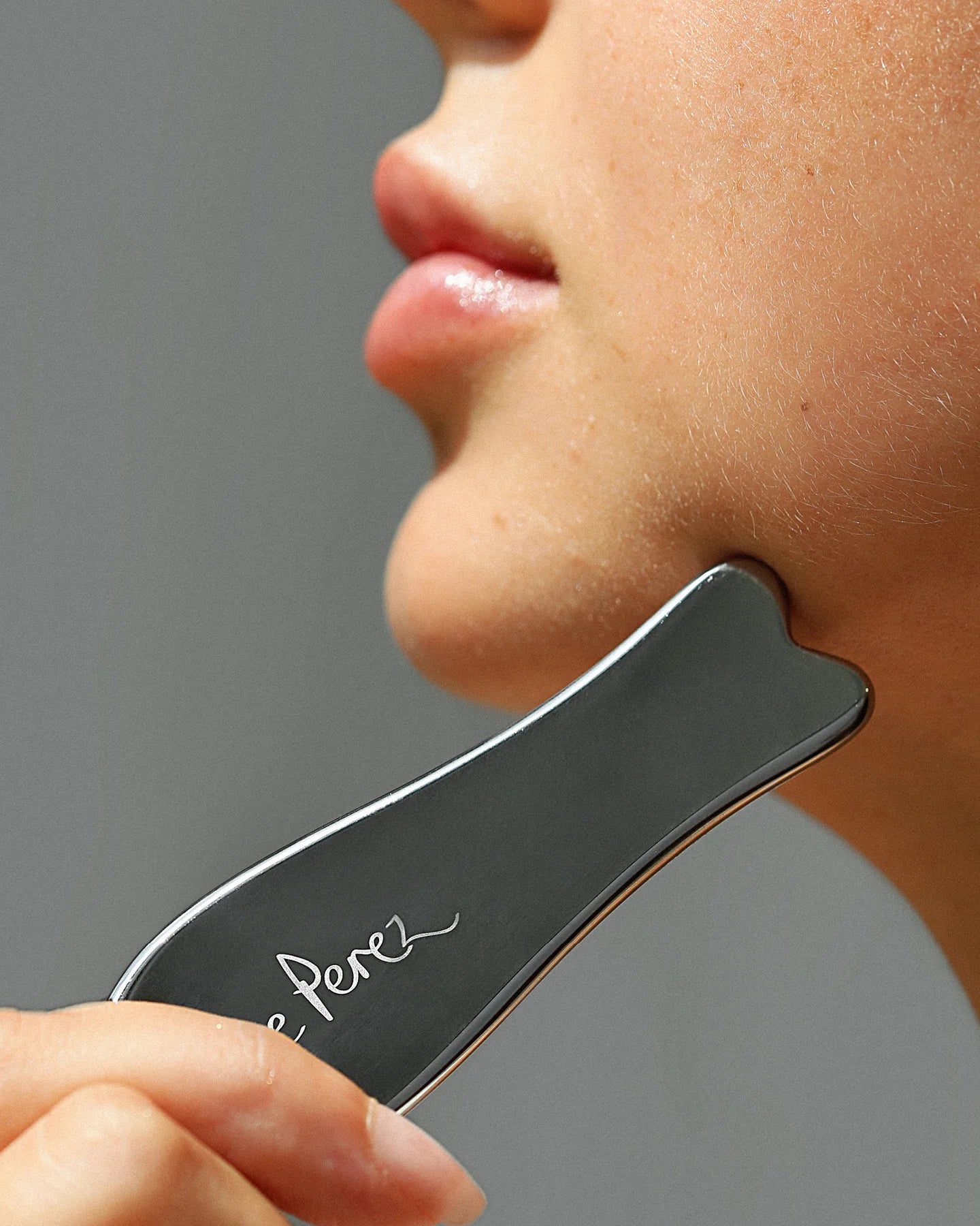 A luxurious beauty tool, expertly crafted to reduce puffiness, increase circulation and sculpt the face. With ultimate therapeutic benefits, based on the Chinese technique of Gua Sha, the Steel Face Tool is crafted with skin-cooling stainless steel and encourages radiant, healthy skin. The unique tail shape helps contour the jawline and cheekbone, whilst the long edge helps assist lymphatic drainage, puffiness and relieve muscle tension. Made of 100% medical grade stainless steel which makes it easy to clean and disinfect. Safe and effective for all skin types.