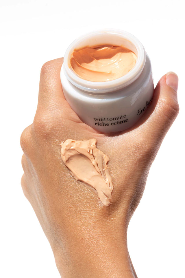 The luxe blend of complexion-fortifying plant ingredients makes this a dream for your skin, loaded with antioxidants to neutralise free radicals and support a youthful complexion. Tomato seed oil is the heroine, great for improving skin elasticity and known as one of the world’s richest sources of lycopene. Lycopene helps heal dryness and encourages smooth skin texture. Hyaluronic acid, cocoa butter and vitamin E round out this beautiful formula that sinks into skin like a long drink of water. Lavender and chamomile soothe skin and uplift all beauty rituals. Restores all complexions to a healthy glow.